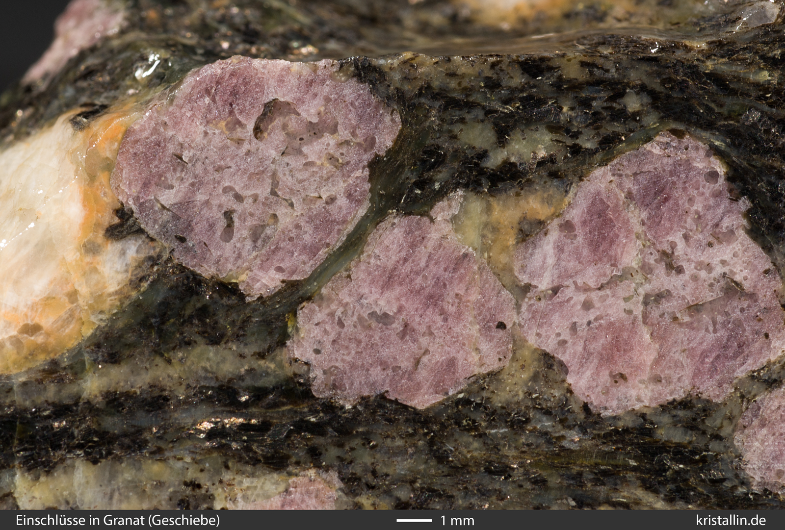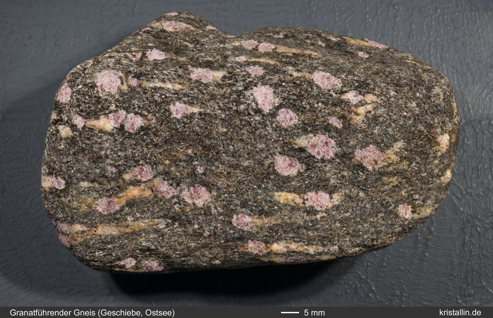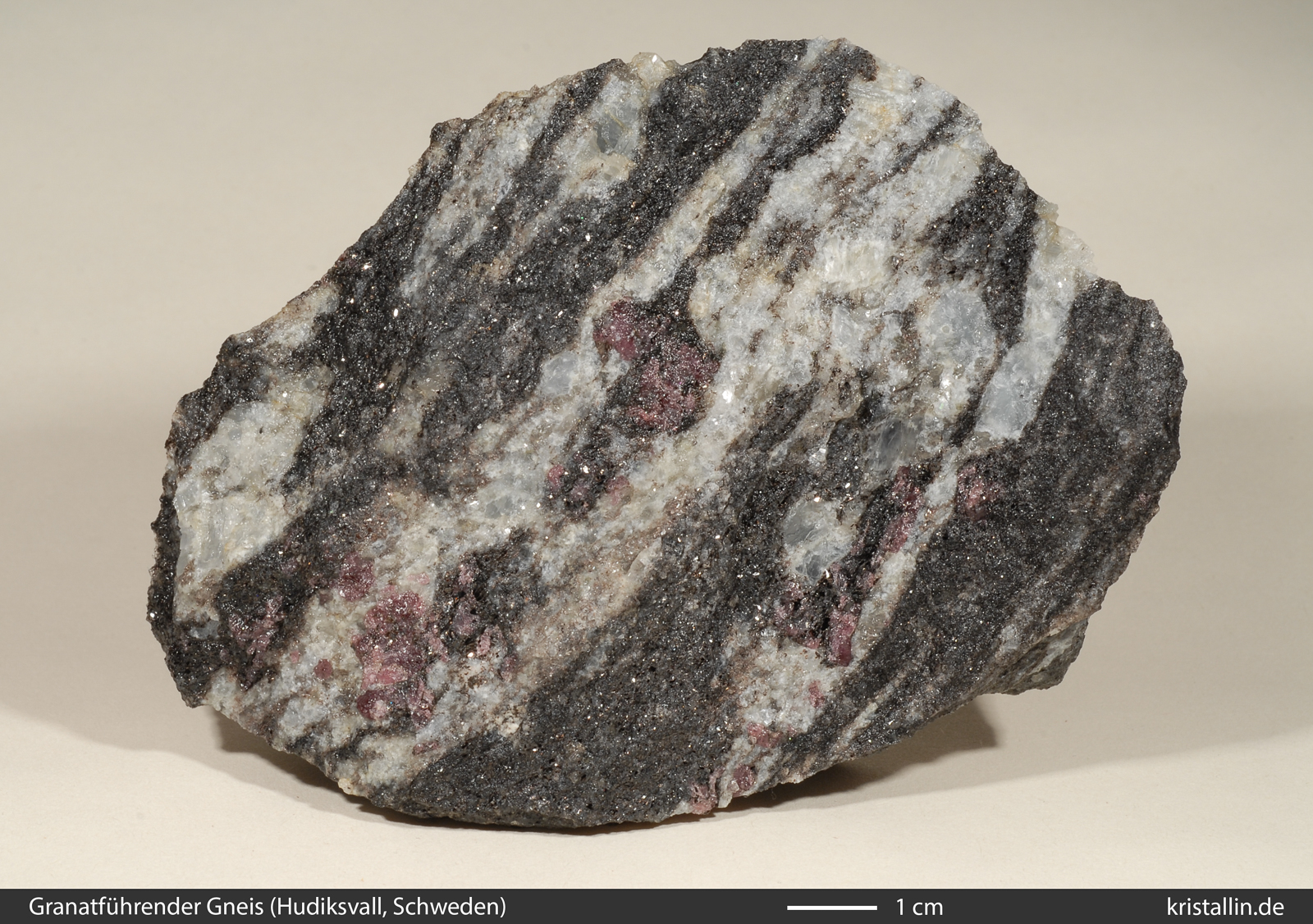 sowie Quarz. Im zweiten Gneis sind die Granate leicht violett. In der