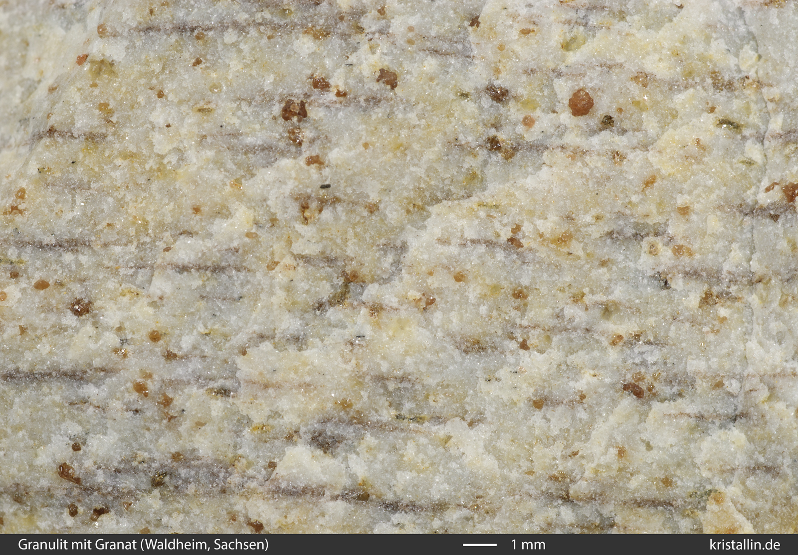 den hellen Bereichen aus Feldspat und Quarz gut erkennen kann.