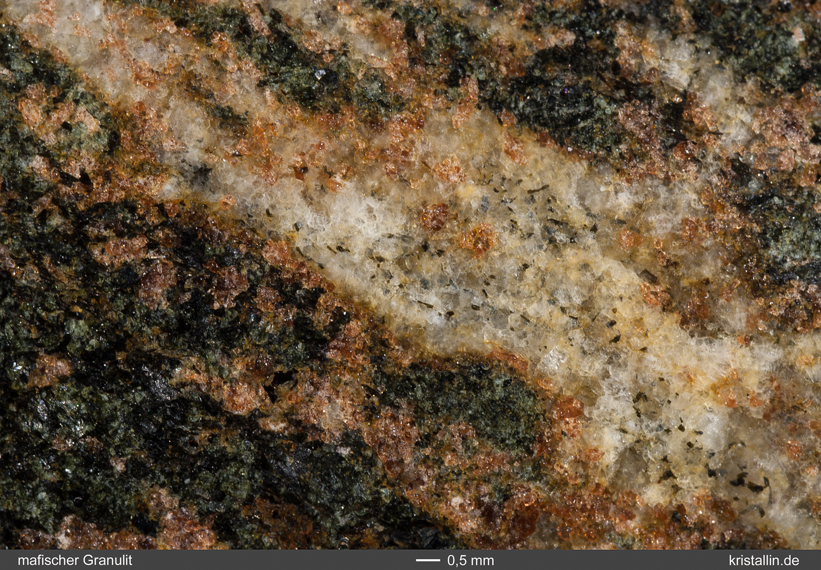 ist Alkalifeldspat, das Rötlichbraune ist Plagioklas.)