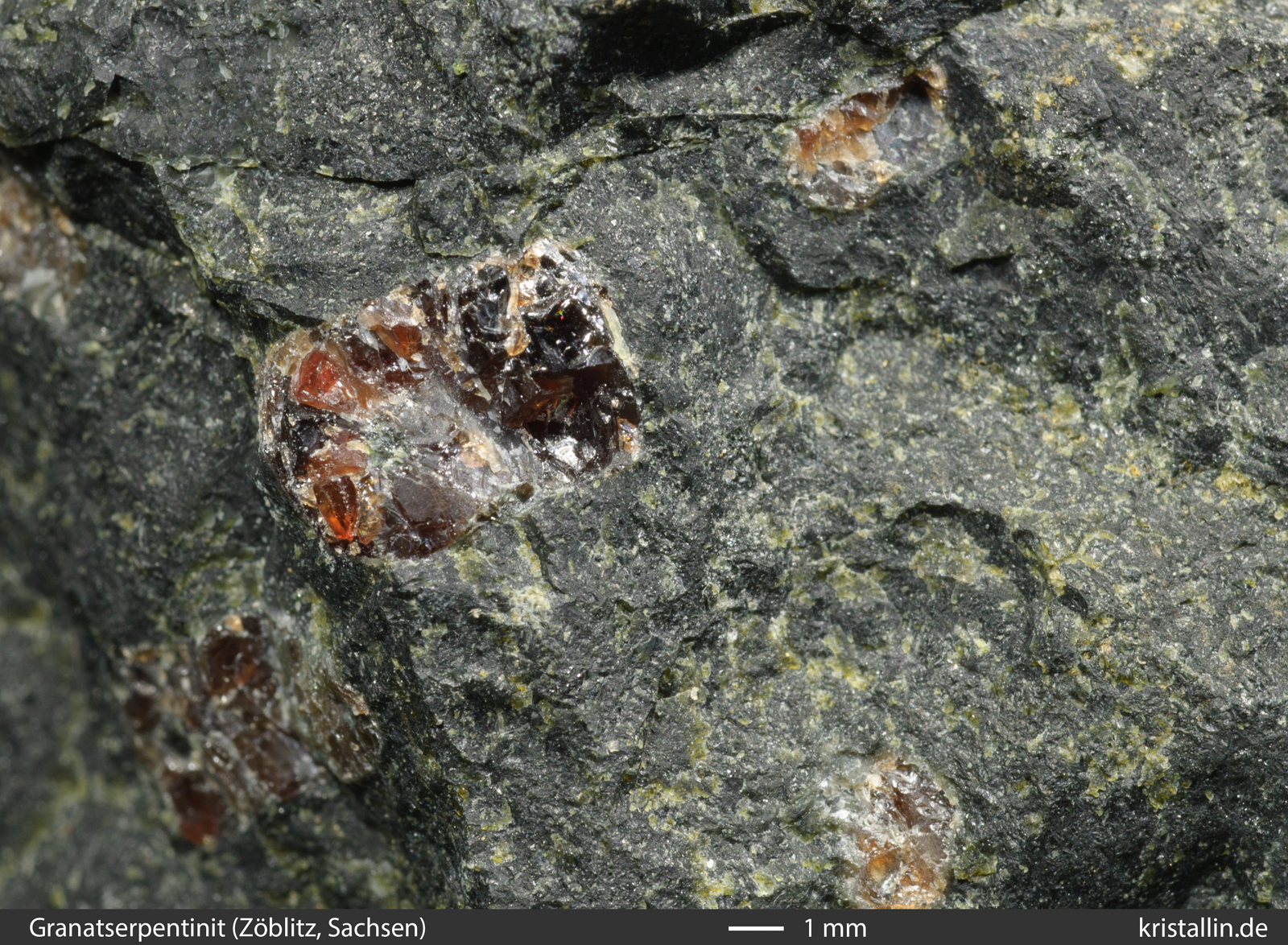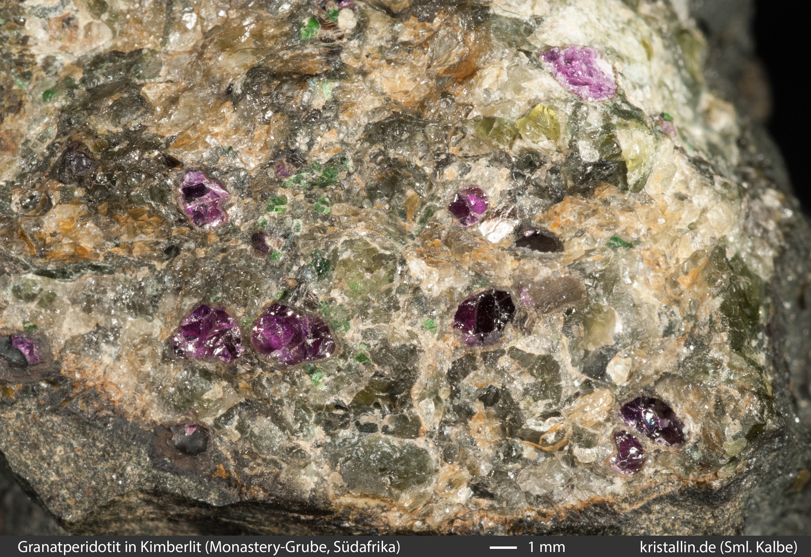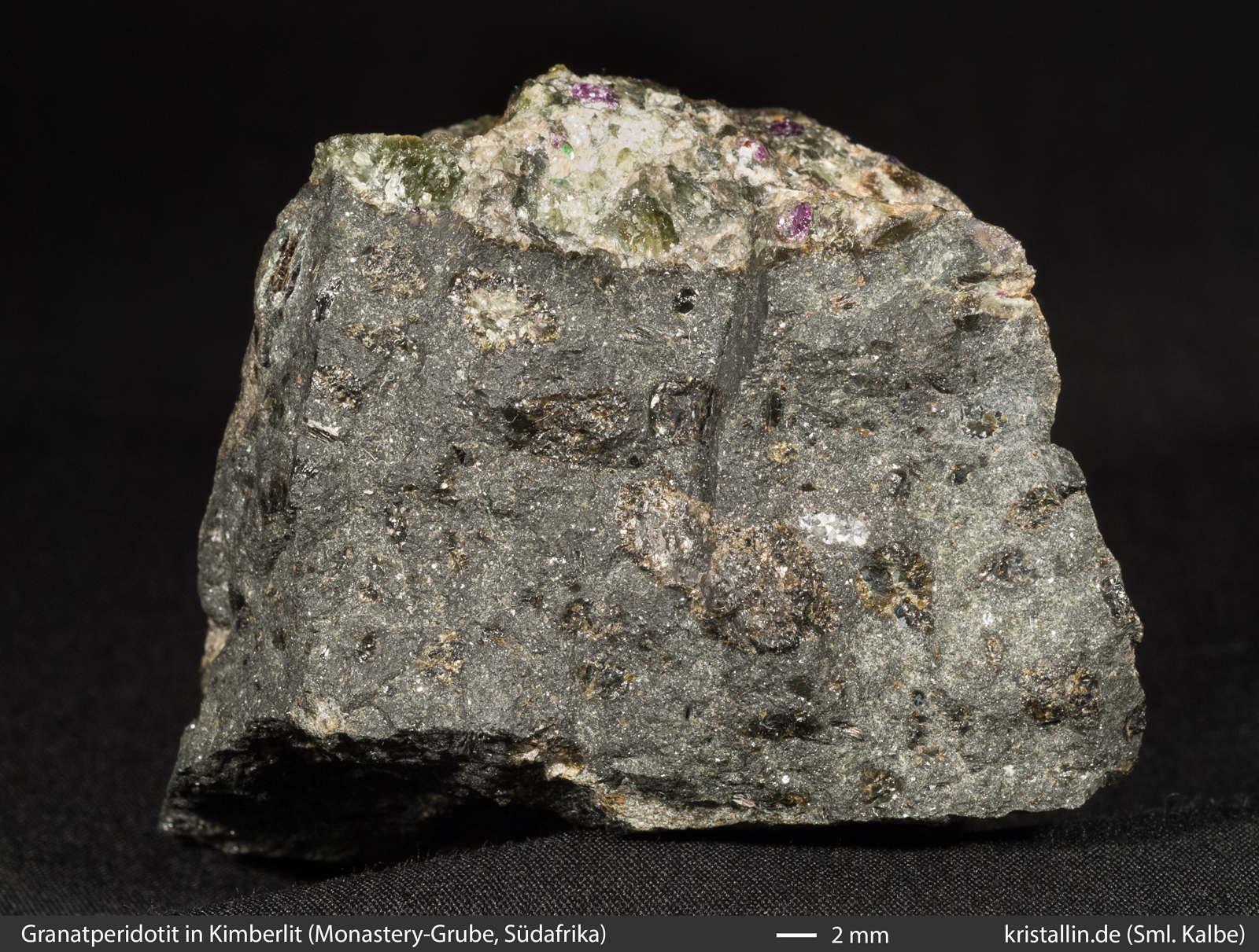 sehen. Rechts die Nahaufnahme des Granatperidotits.