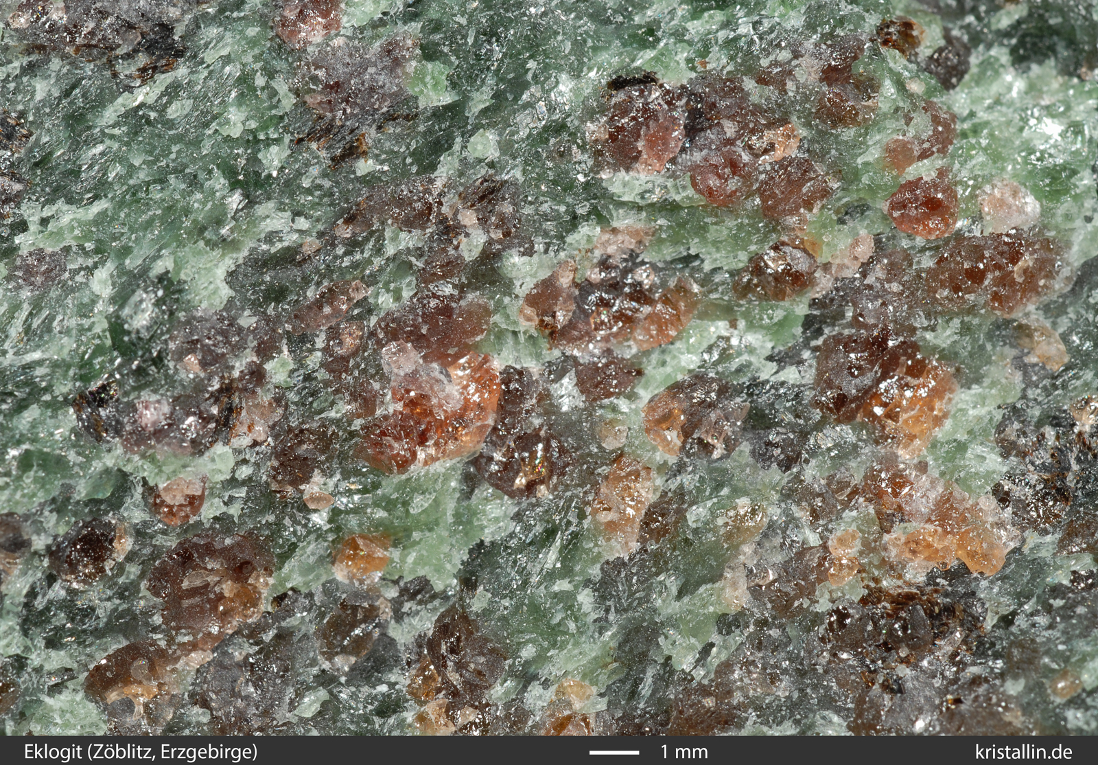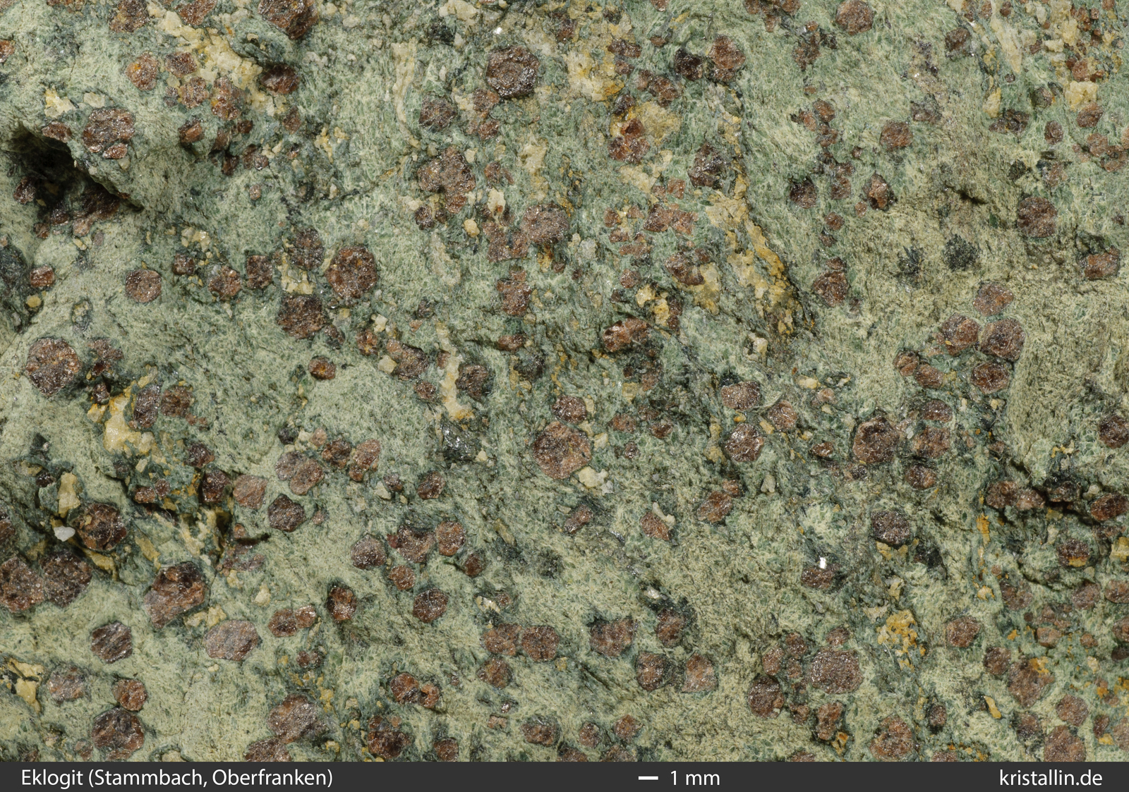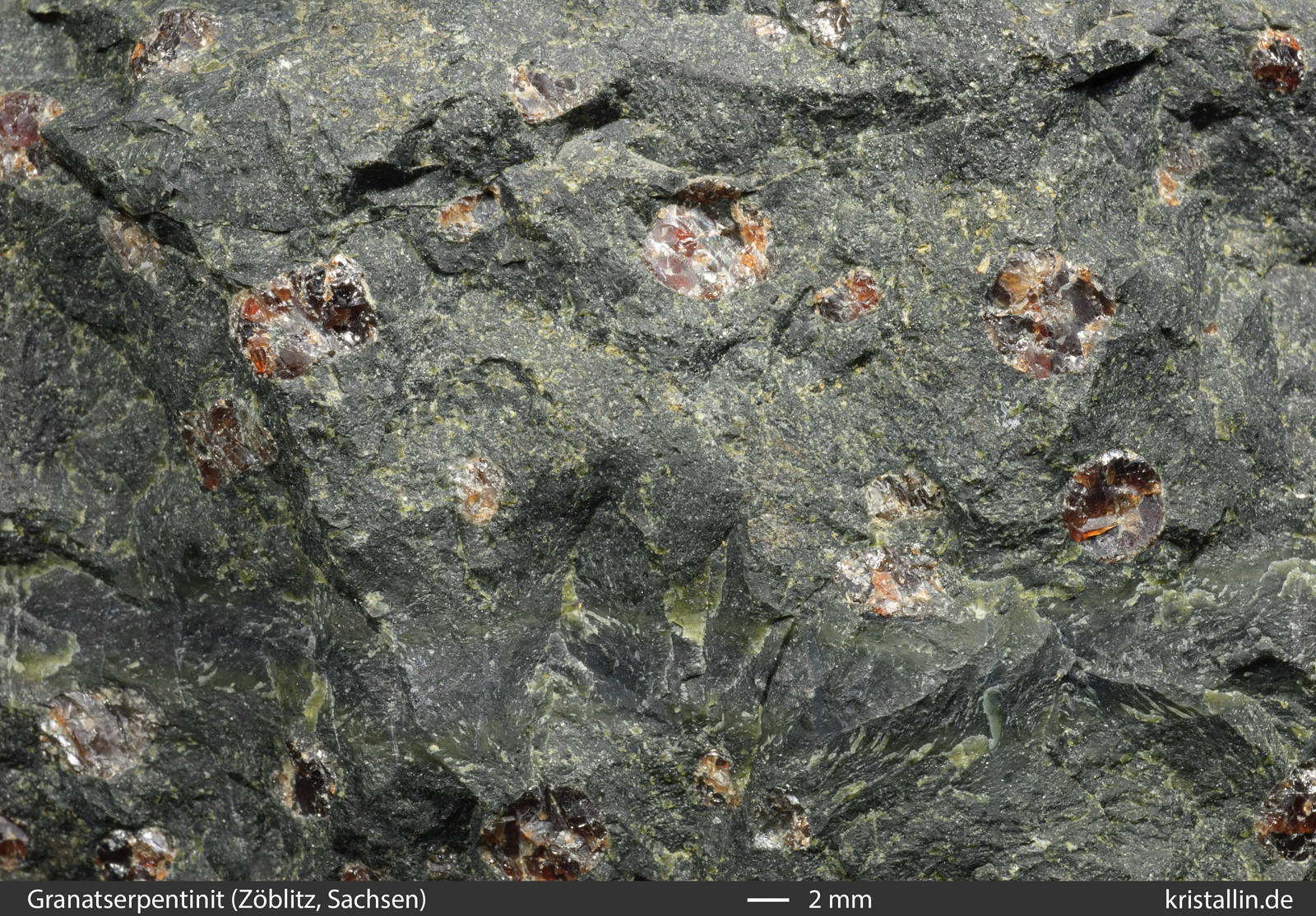 sehen. Rechts die Nahaufnahme des Granatperidotits.