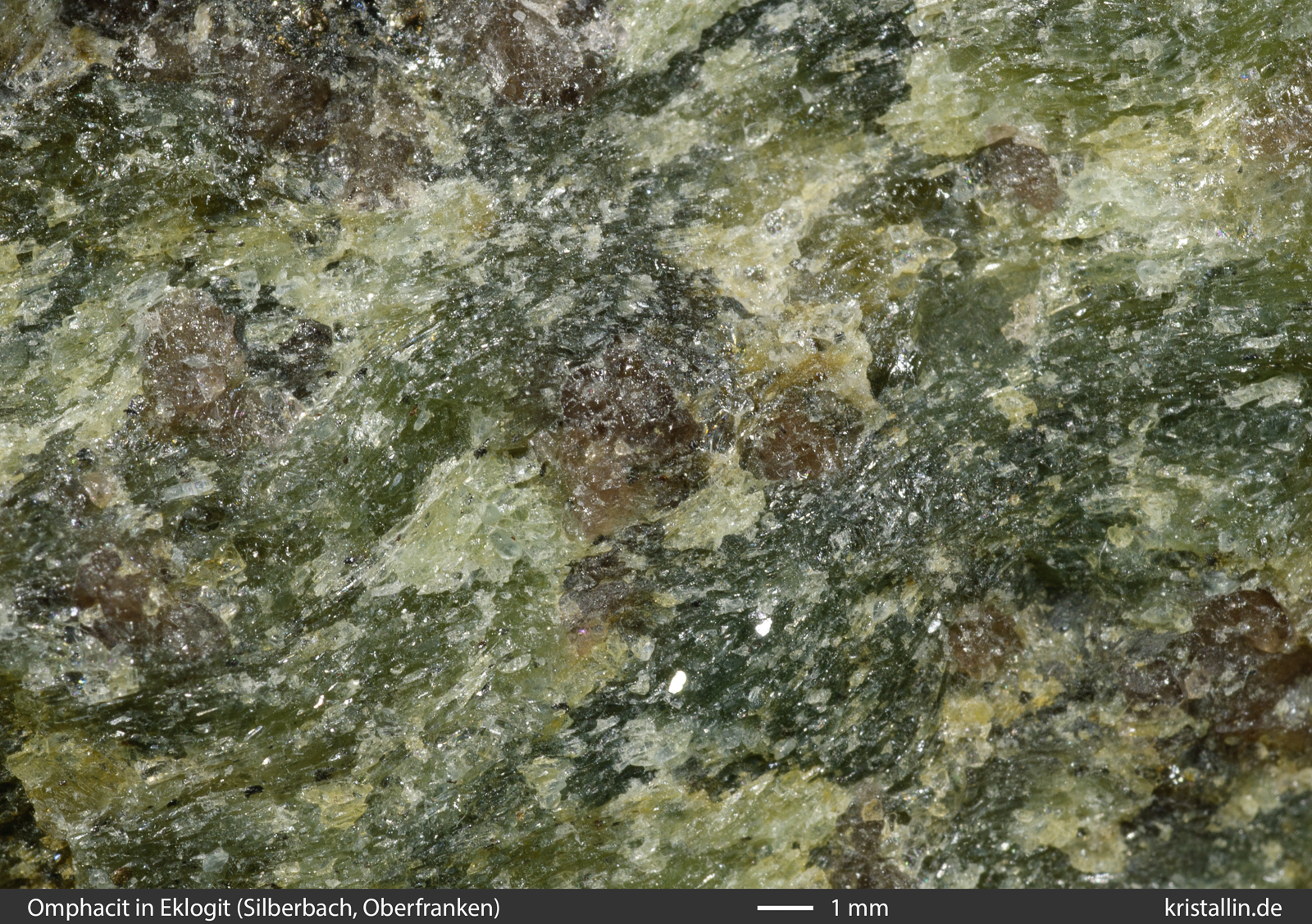 (beim Granatamphibolit) Granat in kleinen braunroten oder rotvioletten