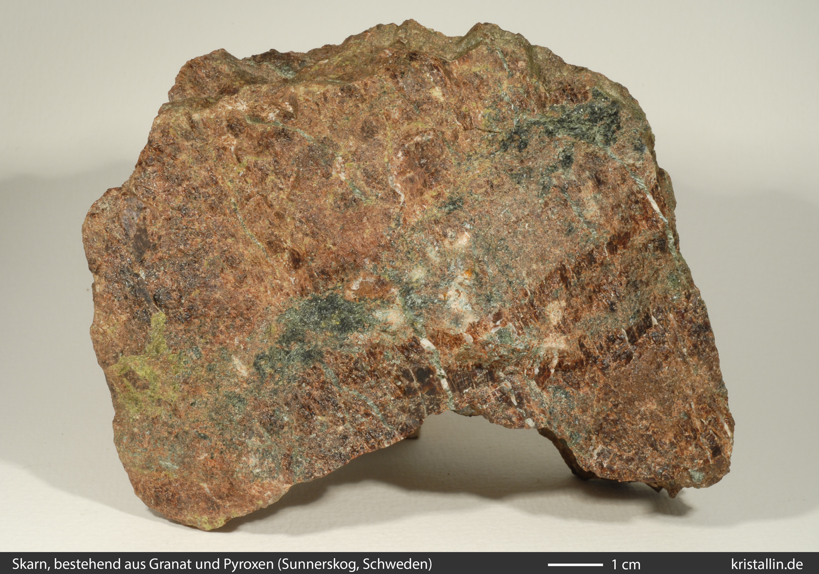 rotbraunem Granat. Solche Pyroxen-Granat-Skarne fallen vor allem durch ihre