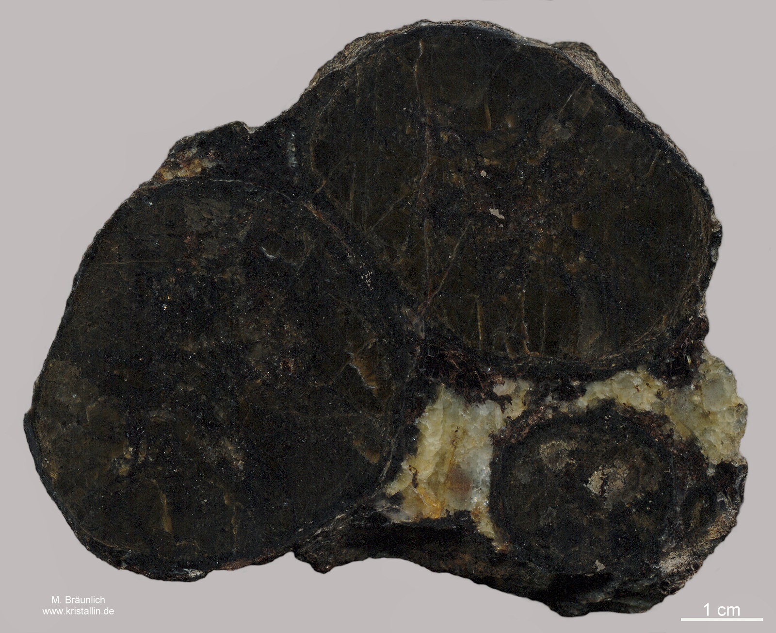 Biotitumhüllungen nur wenig belastbar. Der Orbiculit verliert entlang