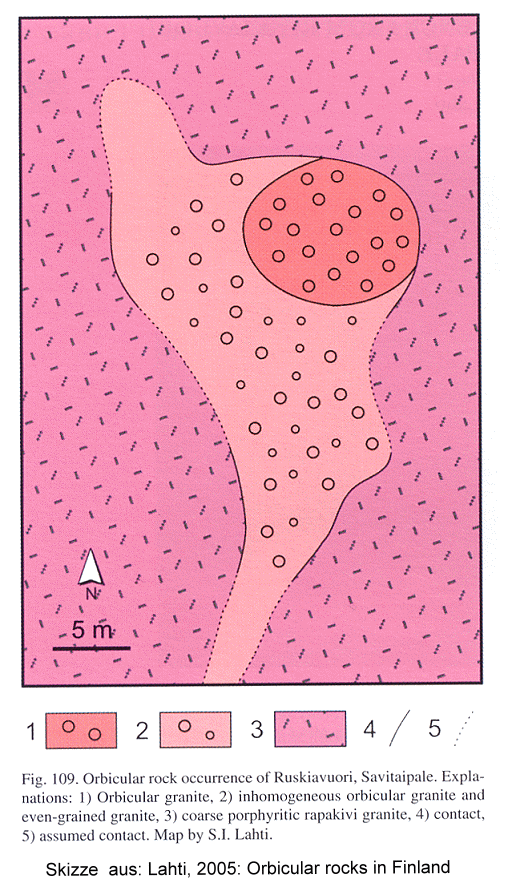 Die Grundmasse ist beim Ruskiavuor-Kugelgranit ausgesprochen