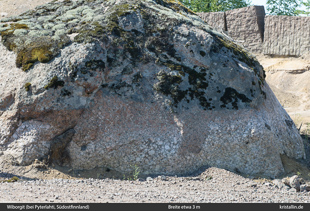Der Wiborgitblock liegt in der Nähe von Pyterlahti in Südost-Finnland. Sein unterer Teil war ursprünglich von saurem Boden bedeckt und wurde deshalb komplett gebleicht.