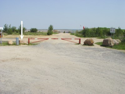 Tagebau Zwenkau, südlich von Leipzig, Zufahrt von der Umgehungsstraße im Westen. Links neben der Schranke liegt ein Åland-Rapakiwi. | ||||||||||||||||||||||||||||||||||||||||||||||||||||||||||||||||||||||||||||||||||||||||||||||||||||||||||||||||||||||||||||||||