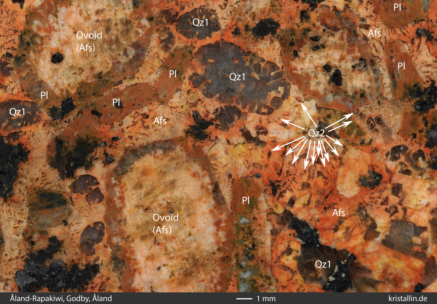 In allen Åland-Rapakiwis findet man zwei verschiedene Formen von Quarz.