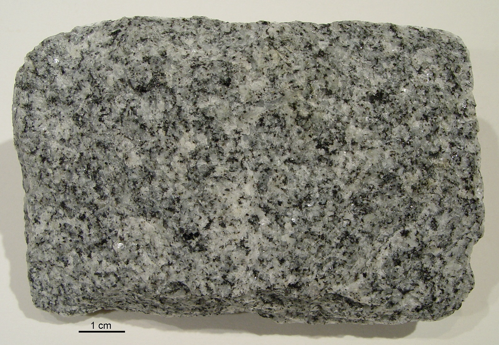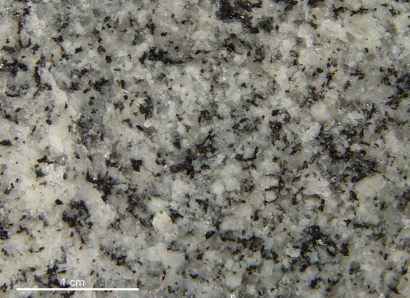 Das Gefüge ist im frischen Zustand von sehr hellen bis weißen Feldspäten und dunklem Biotit geprägt. Die Feldspäte sind auch mit der Lupe nur schwer zu unterscheiden. Im angewitterten Zustand kann das Gestein einen gelblichen Farbton annehmen. | ||||||||||||||||||||||||||||||||||||||||||||||||||||||||||||||||||||||||||||||||