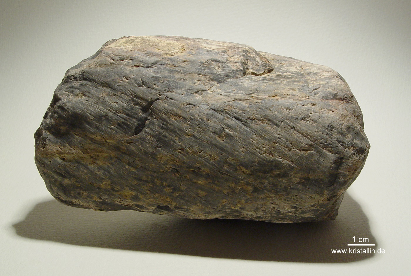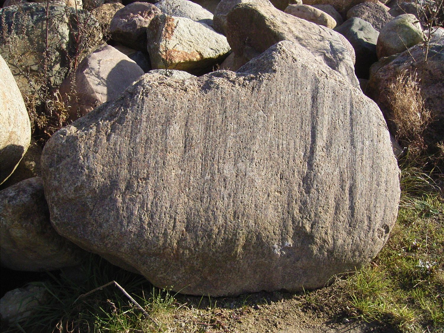 Zuerst ein typisches gekritztes Geschiebe, gefunden in Hamburg. Das Gestein ist