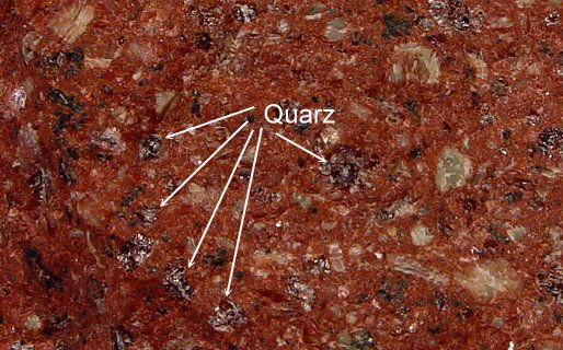 Das nächste Bild zeigt das gleiche Gestein als polierten Schnitt. Die Quarze sind nicht ganz so deutlich zu erkennen, dafür die Feldspäte um so besser. | ||||||||||||||||||||||||||||||||||||||||||||||||||||||||||||||||||||||||||||||||