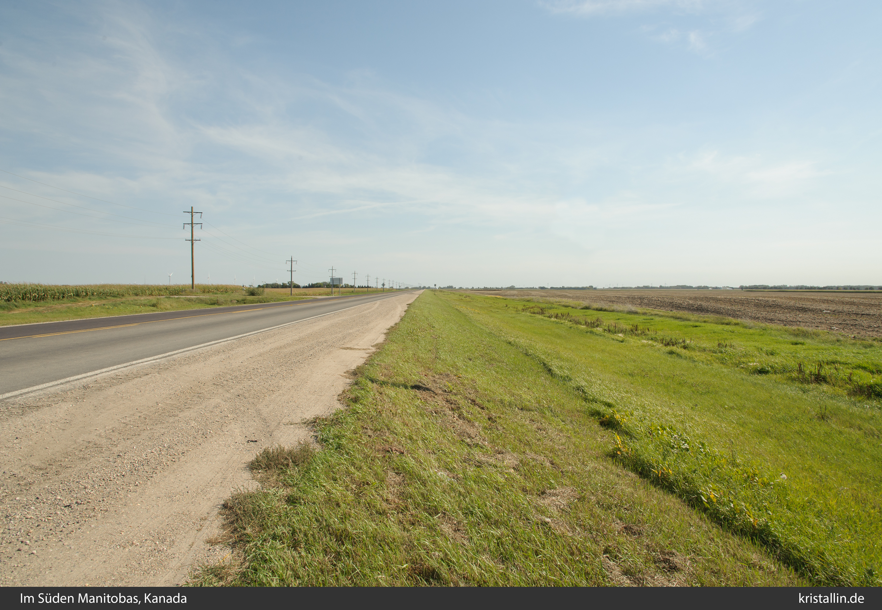 Die Orientierung ist kinderleicht. Fast alle Straßen verlaufen schnurgerade von Ost nach West oder von Nord nach Süd. Hat man eine längere Strecke zu fahren, achtet man mehr auf den Straßenzustand als auf den Streckenverlauf. Es gibt „Provincial Roads“, die nichts Provinzielles sind, sondern gut ausgebaute Schnellstraßen mit erlaubten 100 km/h, was in der Praxis dann 110 bis 115 km/h sind. Da es kaum Verkehr gibt, sind die Kanadier auf langen Strecken deutlich schneller unterwegs als wir in Deutschland.