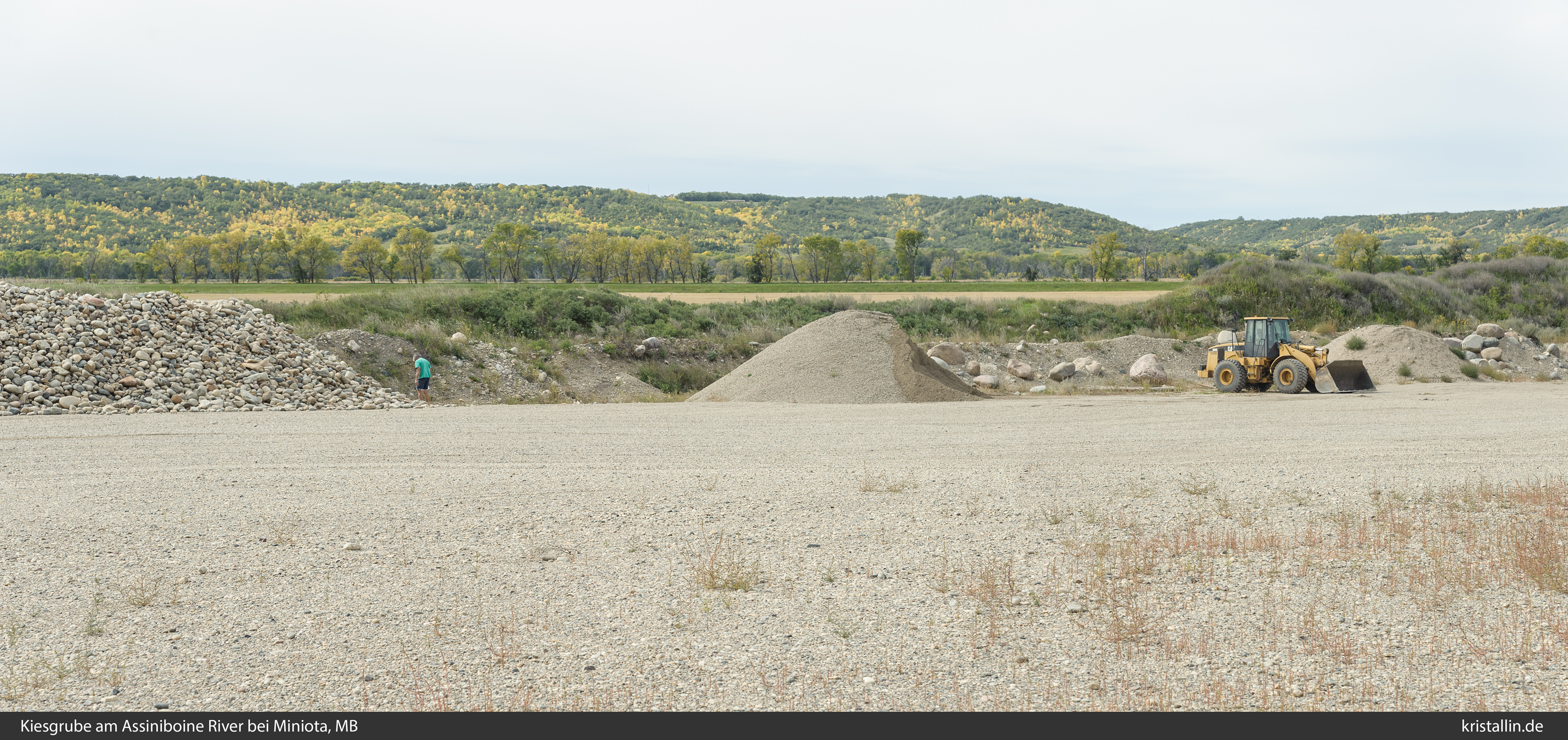 Schon am ersten Wochenende unternehmen wir die längste Exkursion. Wir fahren nach Westen, zu den Kiesgruben bei Miniota, die im Tal des Assiniboine-Rivers liegen. Die Anfahrt ist mit knapp 400 Kilometern ziemlich heftig. Warum so weit? Weil es dort ganz besondere Geschiebe gibt.