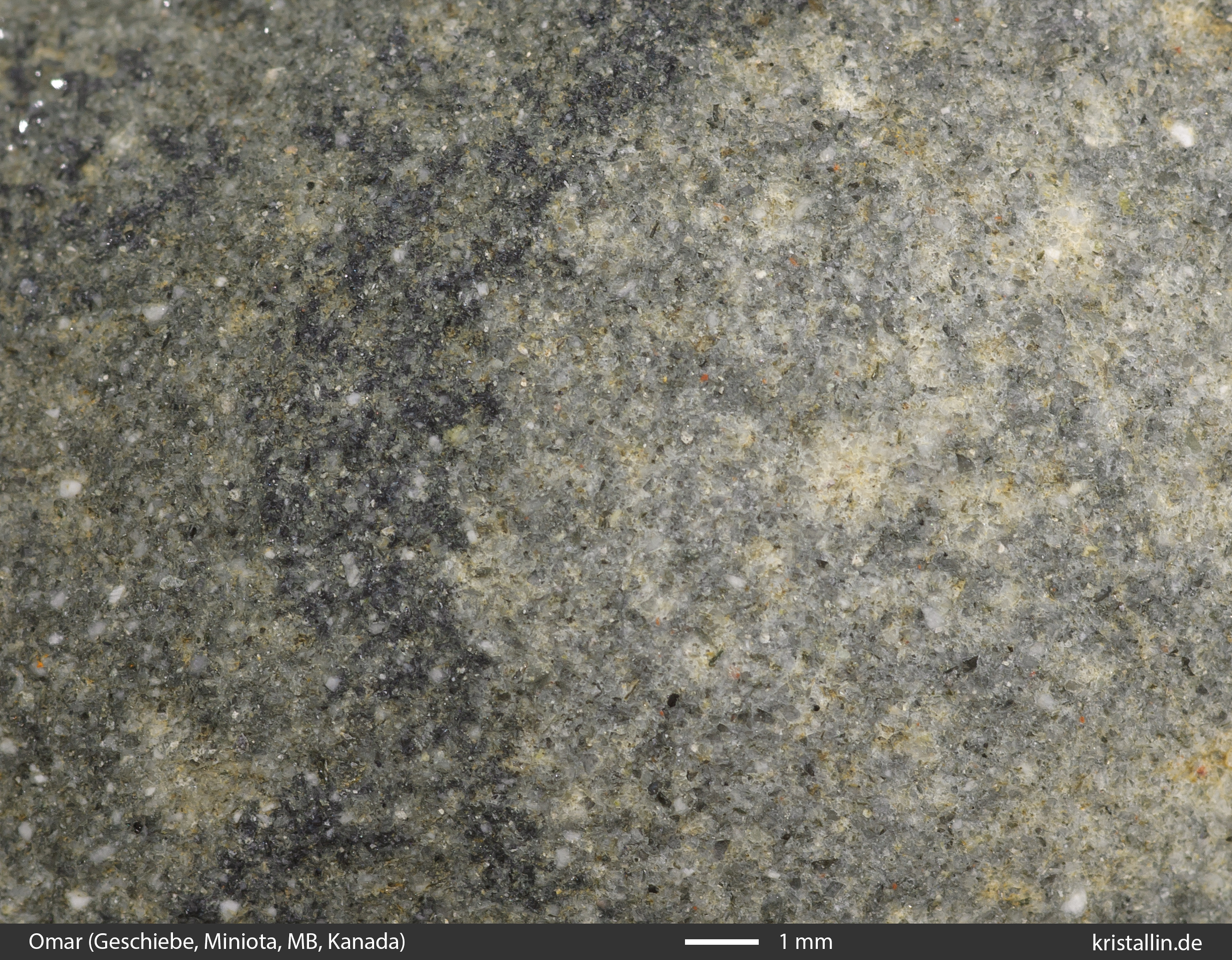 Die Kristallingesteine in Blumenort bilden eine reichhaltige Mischung. Darunter sind auch „granoblastische Amphibolite“, die exakt so aussehen wie die Vertreter aus Skandinavien. Die Amphibole darin sind tiefschwarz und haben zum Teil schöne Kanten, zeigen also ihre Kristallform.