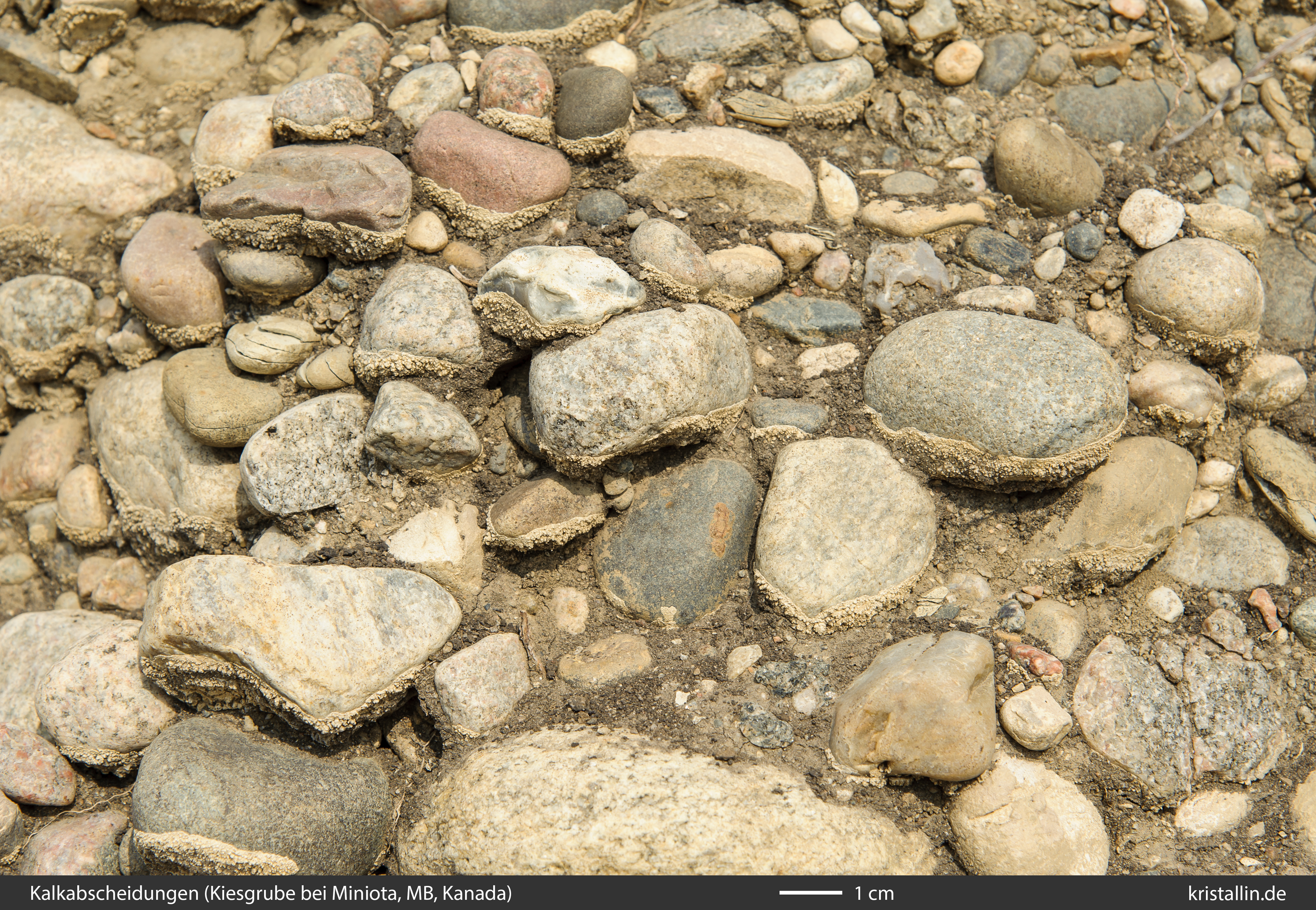 Ich habe keine Ahnung, worin sich diese Stelle von anderen Kieslagen unterscheidet. Sicher ist nur, dass all der Kalk aus Lösungen ausgeschieden wurde, die hier von oben nach unten durch das Sediment gesickert sind.