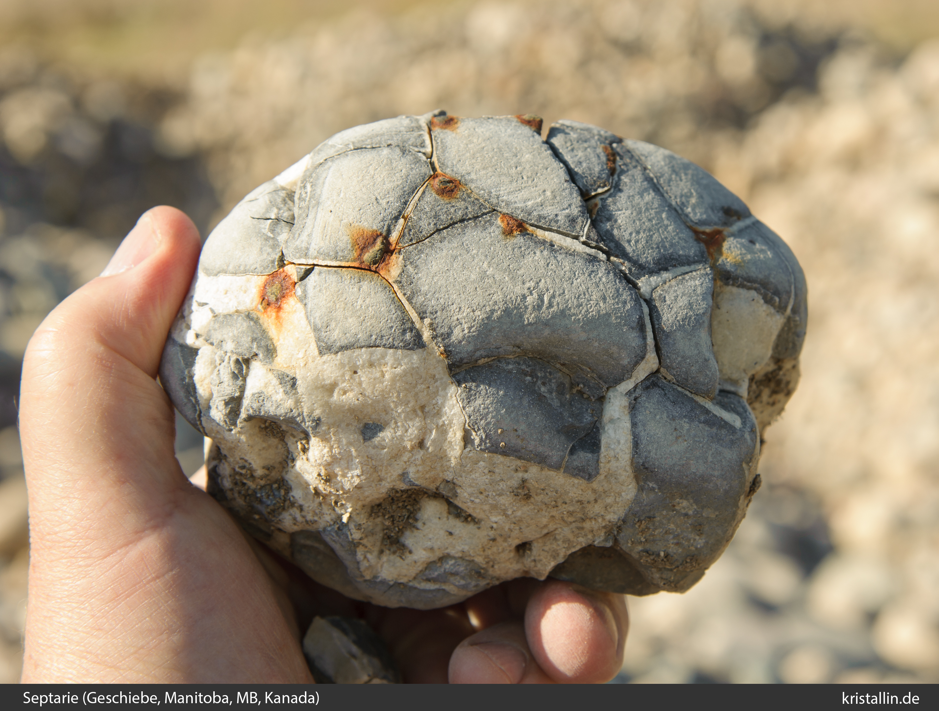 Leider sind alle Septarien bröckelig und zerfallen fast von allein. Es ist nicht eine darunter, die man mitnehmen könnte. Schade.