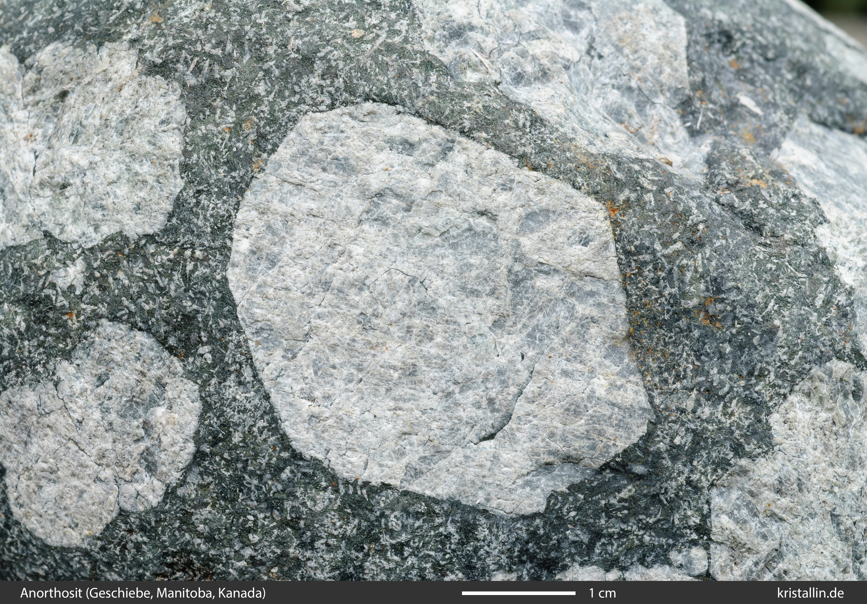 In einer ganz anderen Liga spielen Anorthosite, die im Englischen als „megacrystic“ (riesenkristallig) bezeichnet werden. Sie enthalten extrem große Plagioklase in Form rundlicher Gebilde.