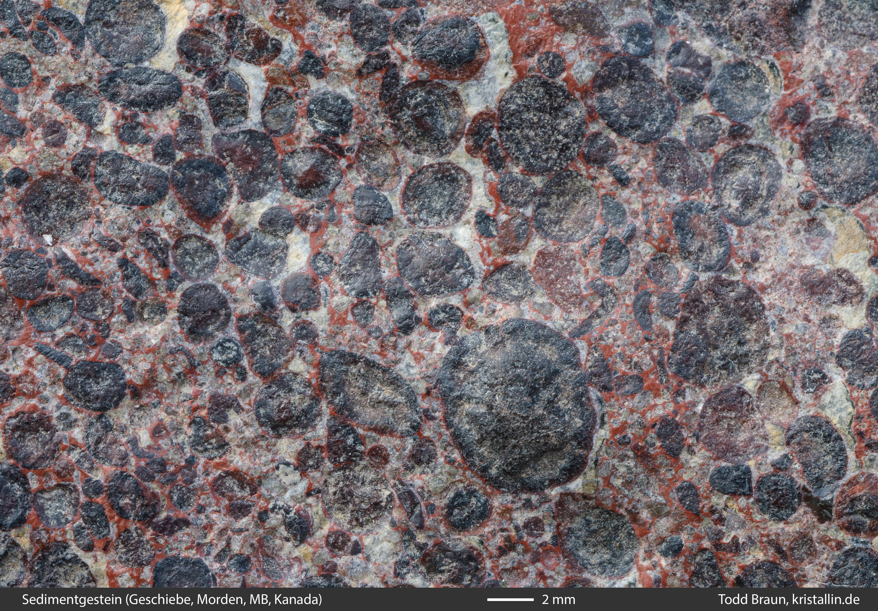 Natürlich gibt es auch Fundstücke, die Fragen aufwerfen. So kommt in einer Kiesgrube bei Morden ein Sedimentgestein vor, das mit dem oolithischen Jaspis bzw. den oolithischen Eisenerzen verwandt sein könnte. Was es genau ist, wissen wir nicht. Eine Nachfrage beim Geologischen Dienst von Manitoba hat uns leider auch nicht weiter gebracht.