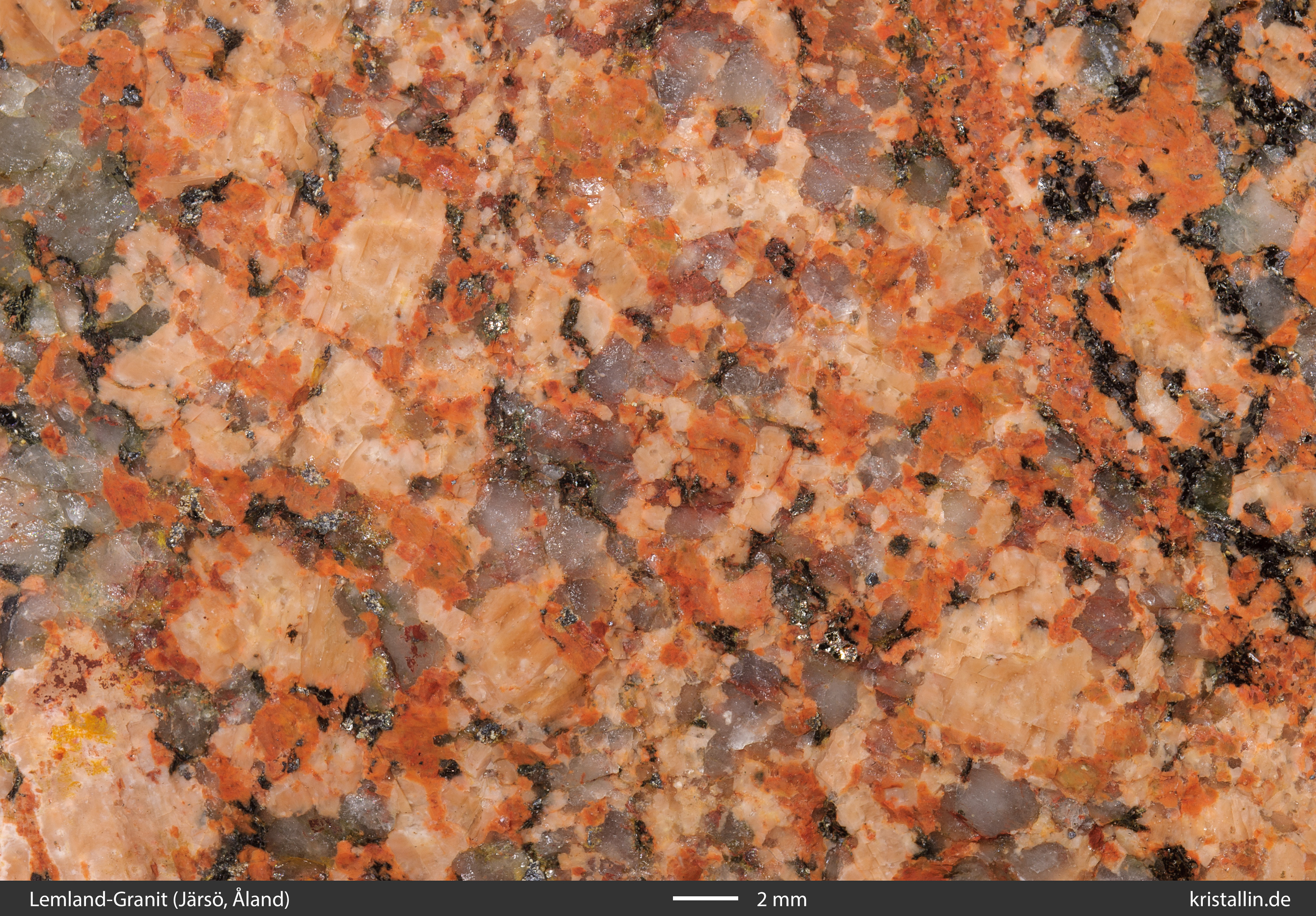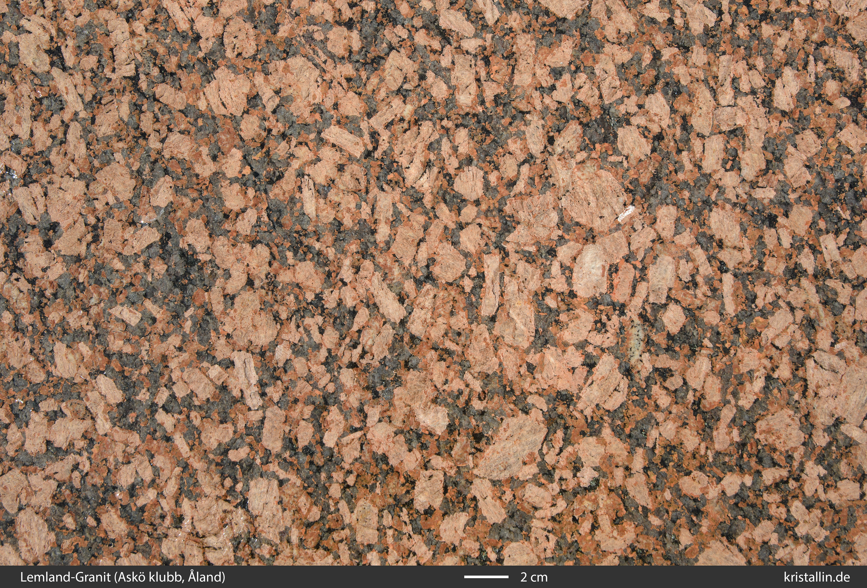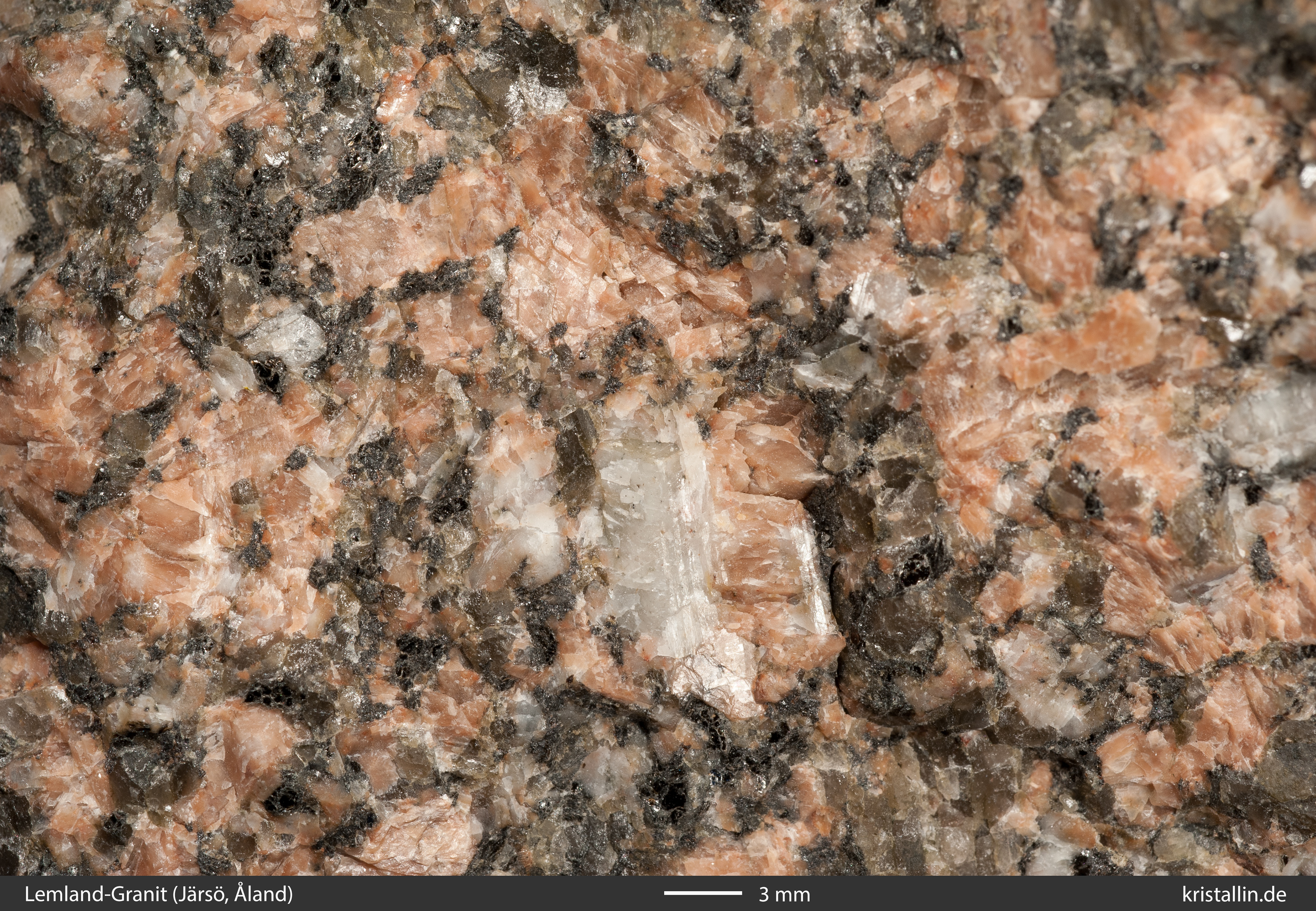 Die dunklen Minerale im Lemland-Granit sind Biotit und Chlorit, die weniger als 10 % des Volumens ausmachen.