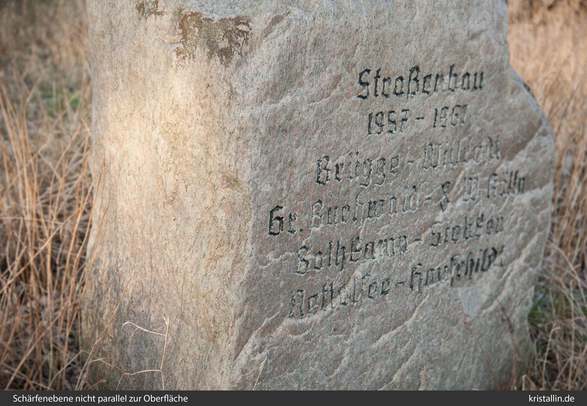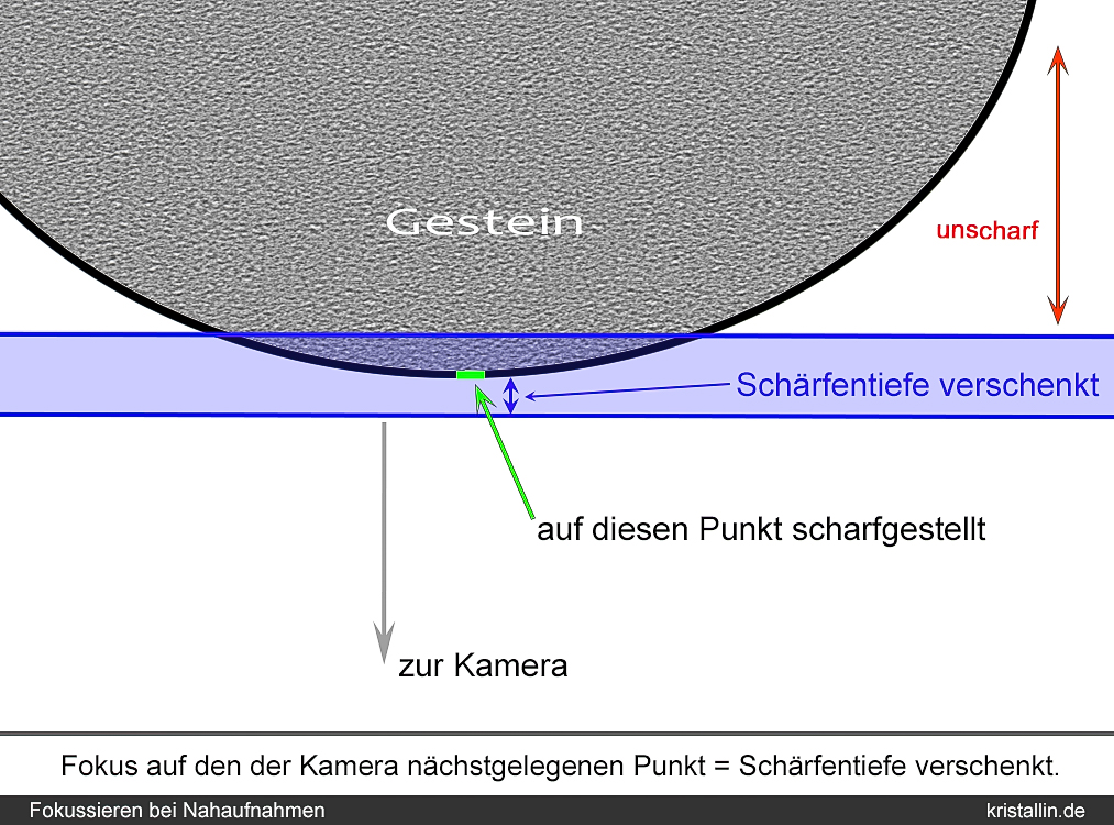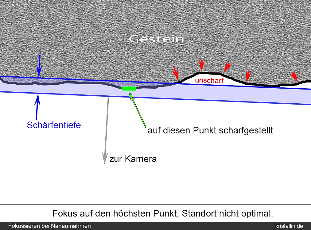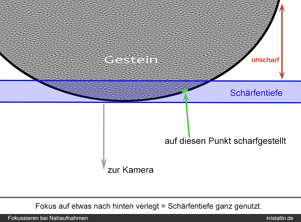 Die Kamera muss genau parallel zur Oberfläche des Steins ausgerichtet werden. Bei kurzen Distanzen ist wichtig, auf welche Stelle der Oberfläche scharf gestellt wird, denn die Schärfentiefe erstreckt sich ein kleines Stück vor und hinter den Fokuspunkt. Diesen schmalen Bereich sollten Sie gezielt nutzen.