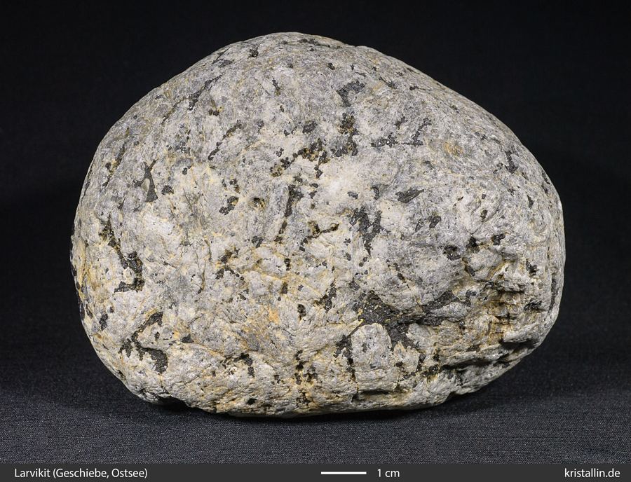 (44/57) Ein weiteres Beispiel für ein grobkörniges magmatisches Gefüge ohne Deformation. Um zu wissen, was wir vor uns haben, müssen wir die Feldspäte bestimmen. (Das hier ist Larvikit, aber das kann man aus dieser Entfernung noch nicht feststellen.)