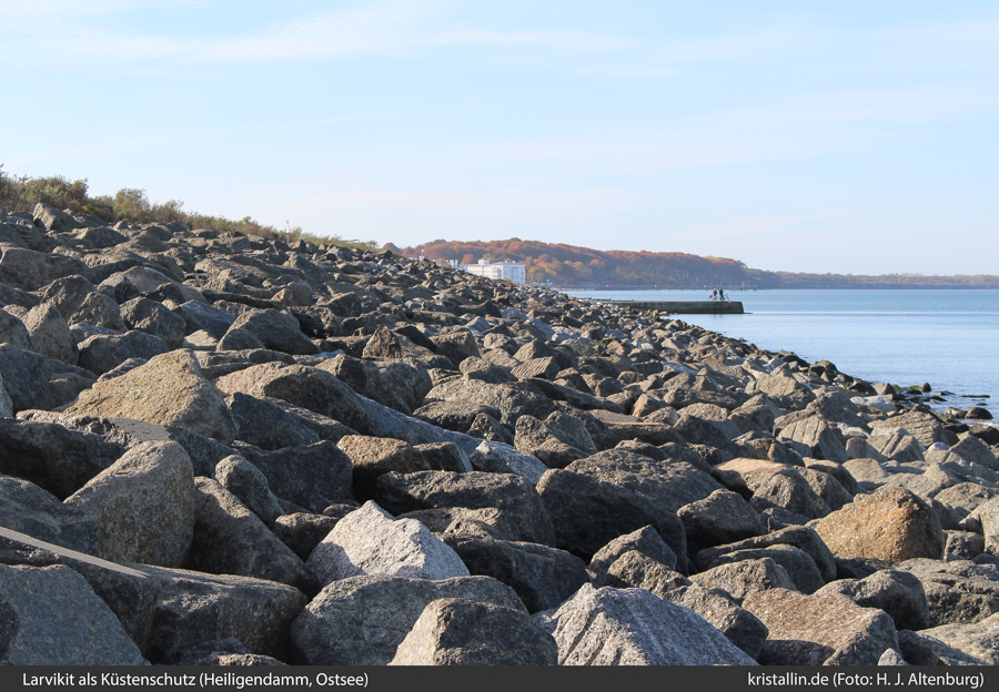 (54/57) Auch östlich von Heiligendamm liegen seit einigen Jahren ein paar Tausend Tonnen Larvikit am Ufer.