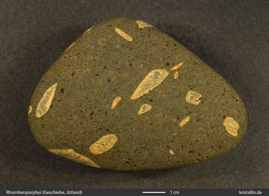 (31/32) Rhombenporphyr, unter Wasser fotografiert. Beachten Sie die Grundmasse, die hier ganz ungewöhnlich aussieht. Sie ist voller kleinster Feldspatleisten. Klicken Sie das Bild an und sehen Sie die Vergrößerung bei 100 %.