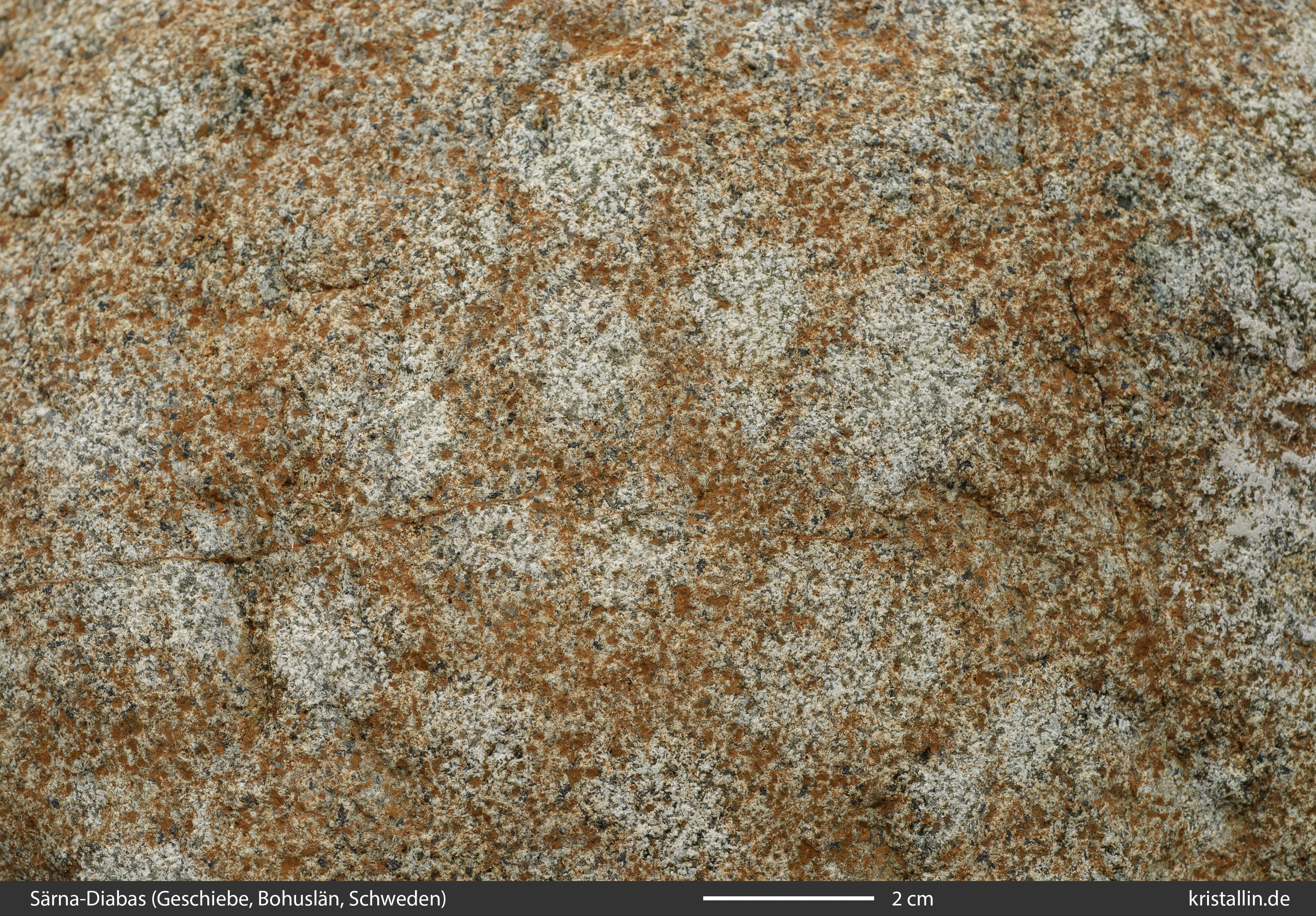 Aus der Nähe gleicht das Gestein einem Åsby-Diabas, denn es besteht wie dieser aus vielen Plagioklasleisten, die von dunklem Pyroxen umschlossen sind. Tatsächlich sind Åsby-Diabas und Särna-Diabas eng verwandt und auch gleich alt (SGU).