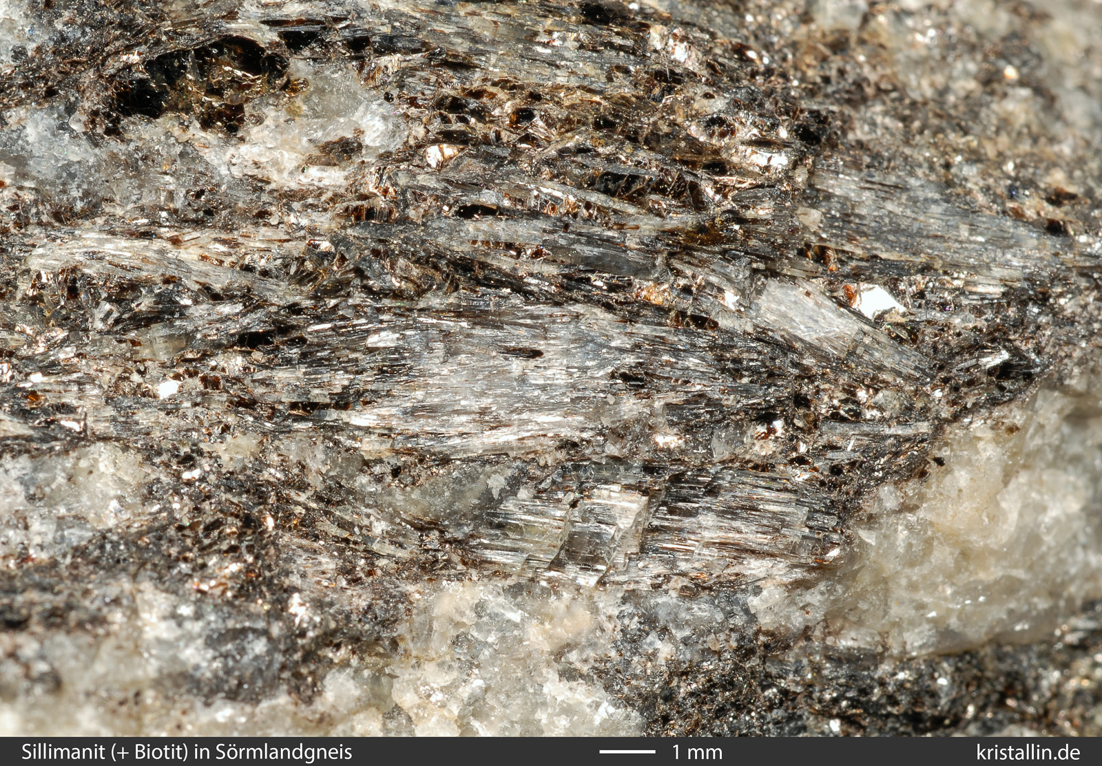 Sillimanitkristallen - so wie oben in den Nahaufnahmen.