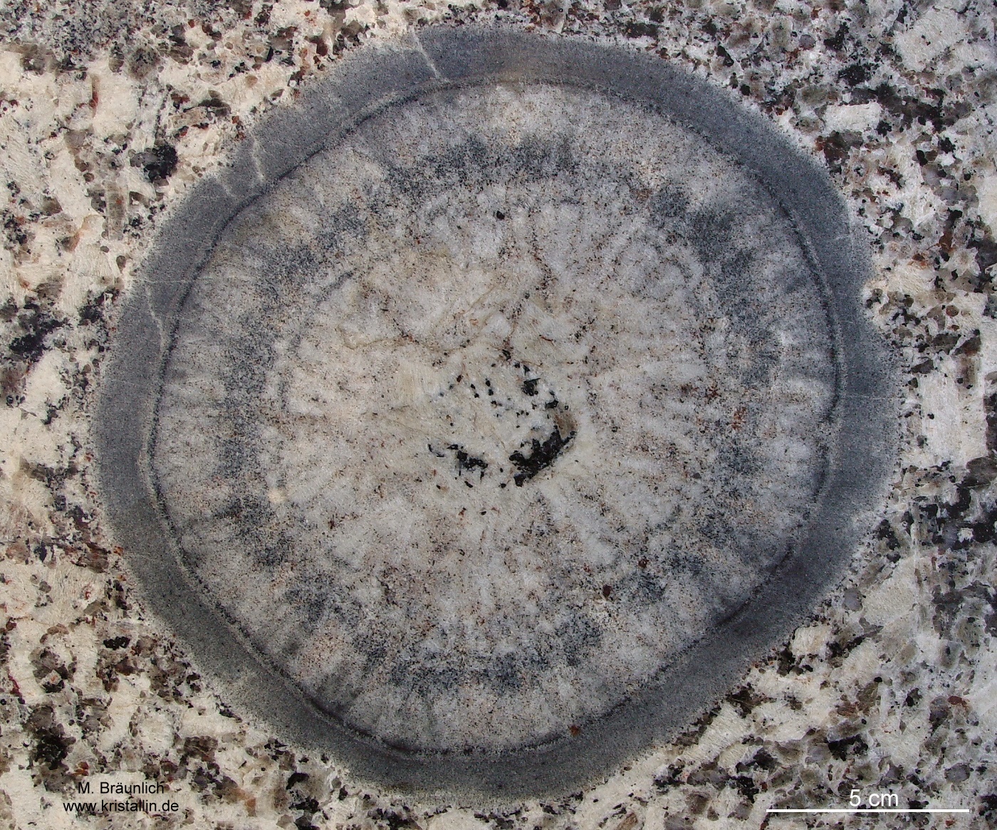 Anordnung der Kristalle im Orbicul ist nicht identisch mit der