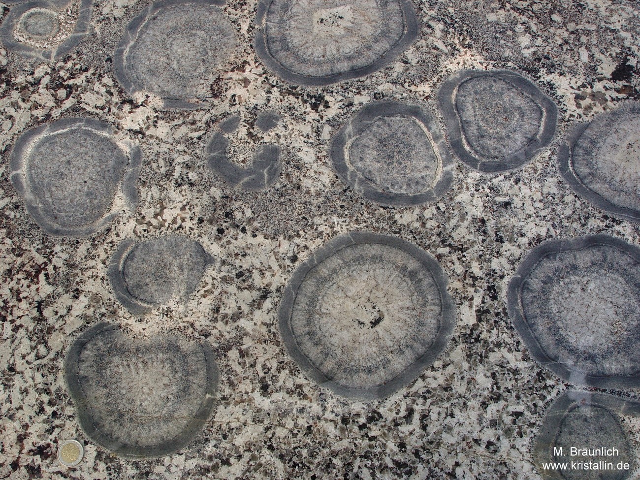 Die Orbicule sind hellgrau und erreichen teilweise fast 20 cm