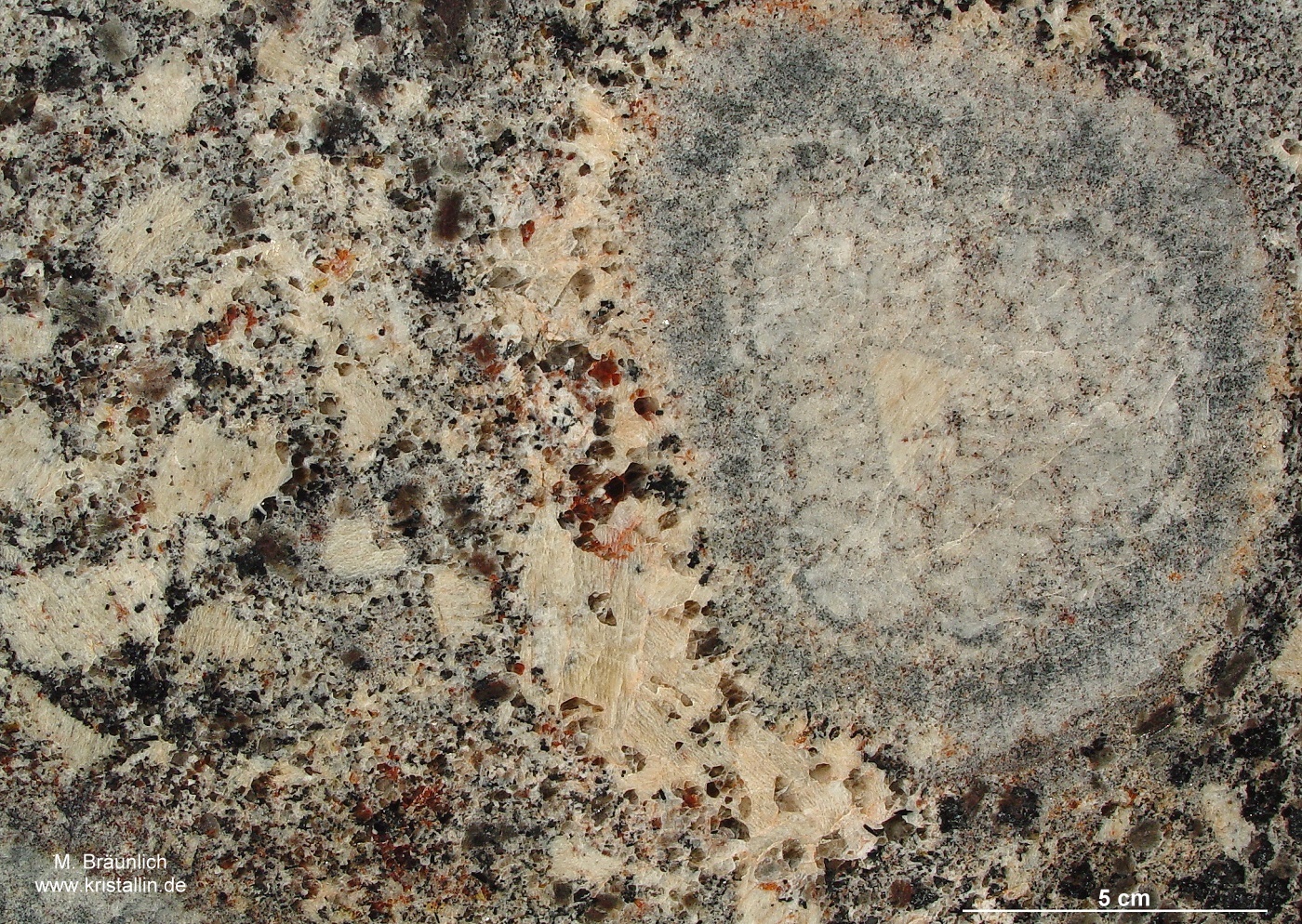 Zum Schluß noch ein Ausschnitt aus einer polierten Platte dieses Kugelgranits: