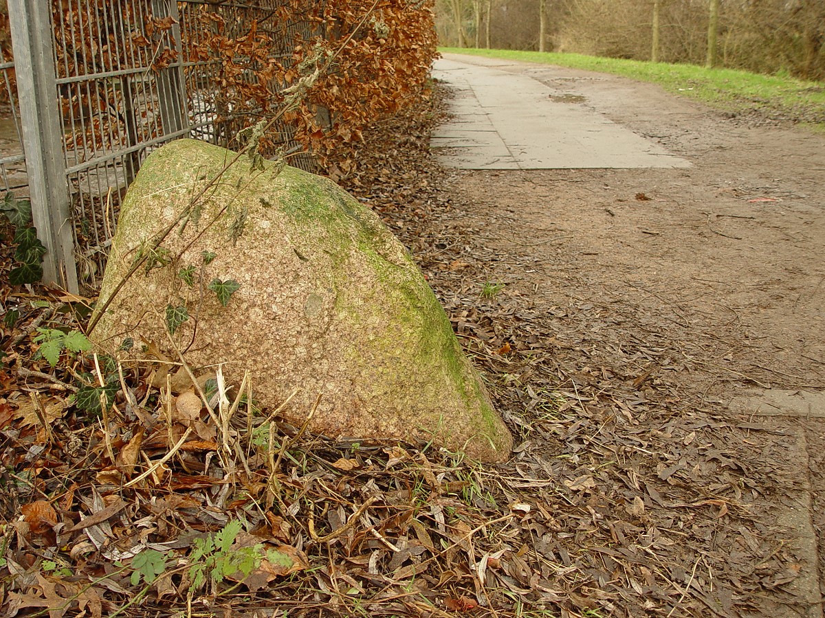 Unten: Findling in Windischleuba bei Altenburg / Thüringen. Der Brocken liegt am Rande einer Zufahrt zu einem Reifen- und Batteriehändler. | ||||||||||||||||||||||||||||||||||||||||||||||||||||||||||||||||||||||||||||||||||||||||||||||||||||||||||||||||||||||||||||||||