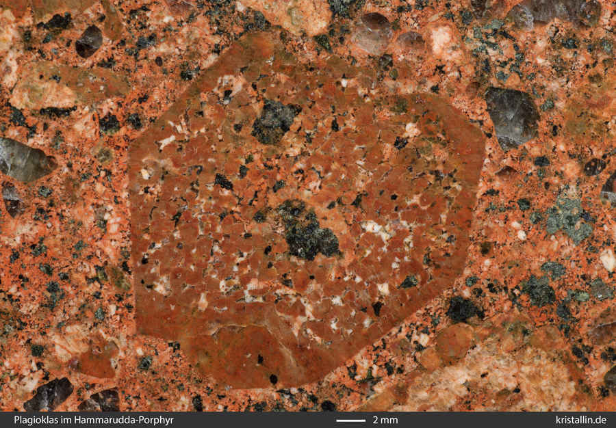 (10/32) Manchmal findet man Feldspäte, die aus vielen winzig kleinen Einzelkristallen zusammengesetzt sind. Hier ist es ein brauner Plagioklas.