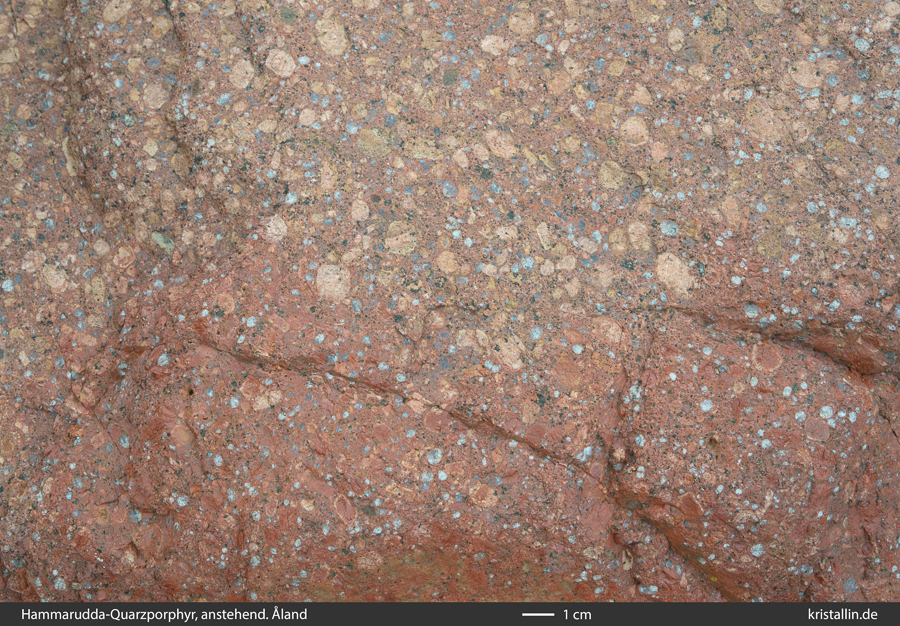 (15/32) Gefügewechsel. Die verschiedenen Varianten des Hammarudda-Quarzporphyrs gehen manchmal scharf und manchmal allmählich ineinander über.