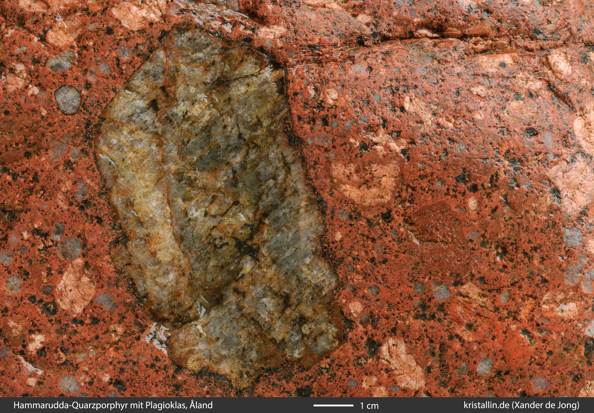 Neben den feinkörnigen schwarzen Gesteinseinschlüssen gibt es im Hammarudda-Quarzporphyr viele große Plagioklase. Die meisten sind grau-grünlich und bei einigen kann man an ihren Umrissen noch die früheren großen Kristalle erahnen. Da auch sie von außerhalb stammen, sind sie „Xenokriste“, also „fremde Kristalle“.