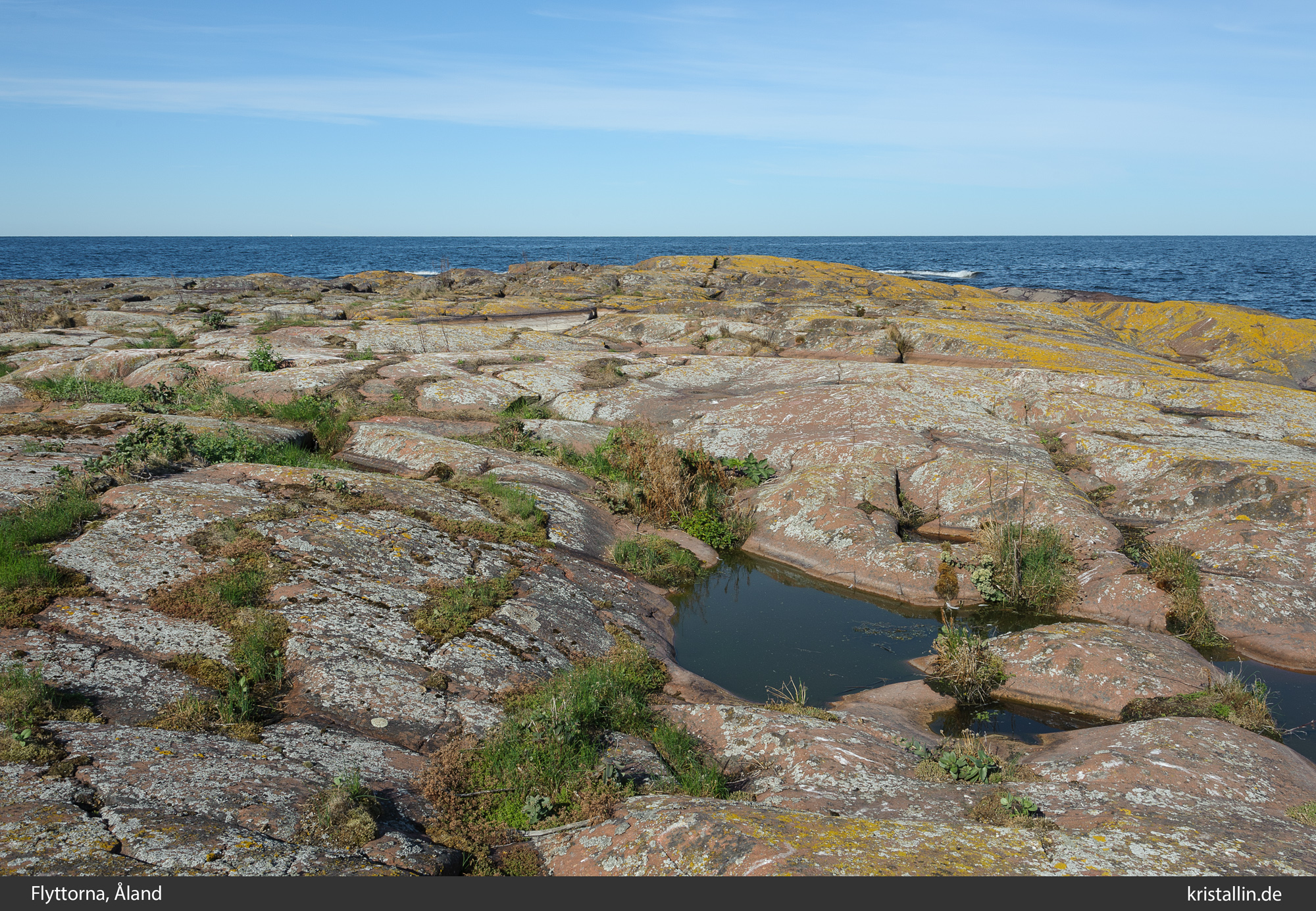 Hammarudda-Quarzporphyre gibt es nicht nur auf der gleichnamigen Halbinsel und ihrer Umgebung, sondern vereinzelt auch im Westen Ålands, im Seegebiet „Signilskärsfjärden“. Die nächste Probe stammt von dort. Genauer gesagt von der Insel Flyttorna.