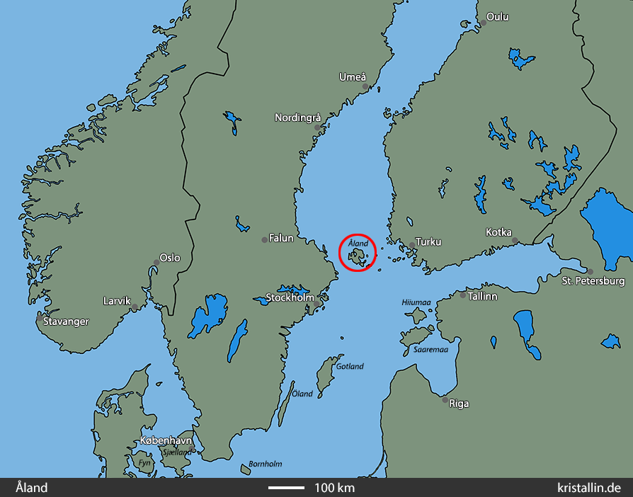 Alle hier gezeigten Handstücke stammen von Åland und dort zumeist von der Südküste der Halbinsel Hammarudda. Runde Steine lagen als lose Stücke direkt auf dem Anstehenden und sind Teil des dortigen Gesteinsspektrums. Die Geländefotos entstanden ebenfalls auf Hammarudda und auf den Inseln Ålands. Die Koordinaten der einzelnen Inseln finden Sie hier: