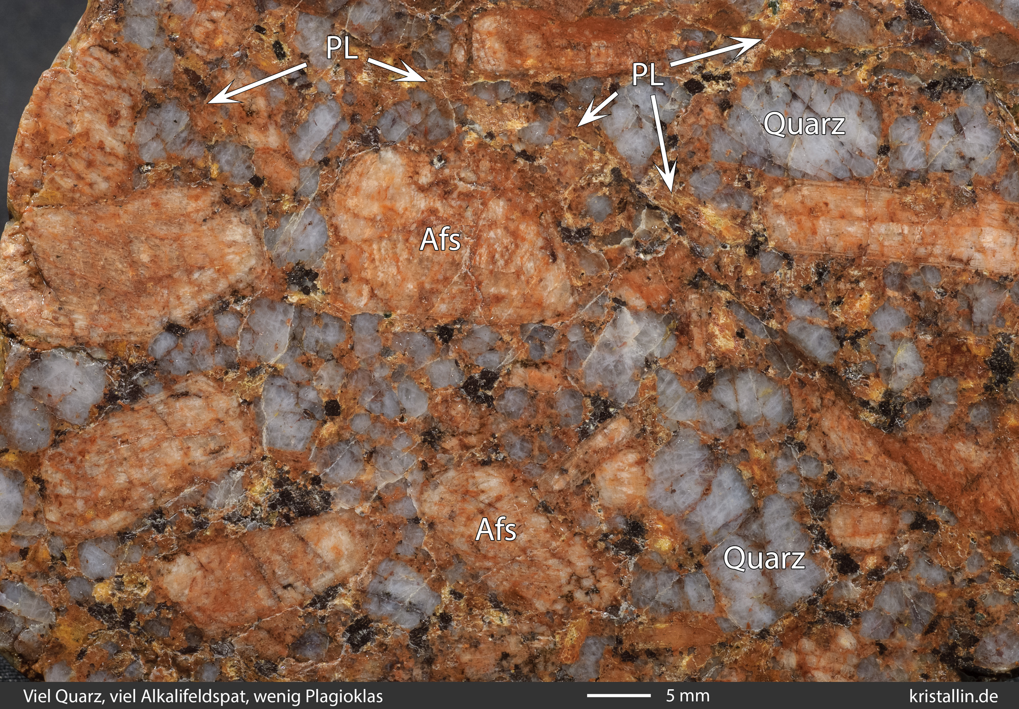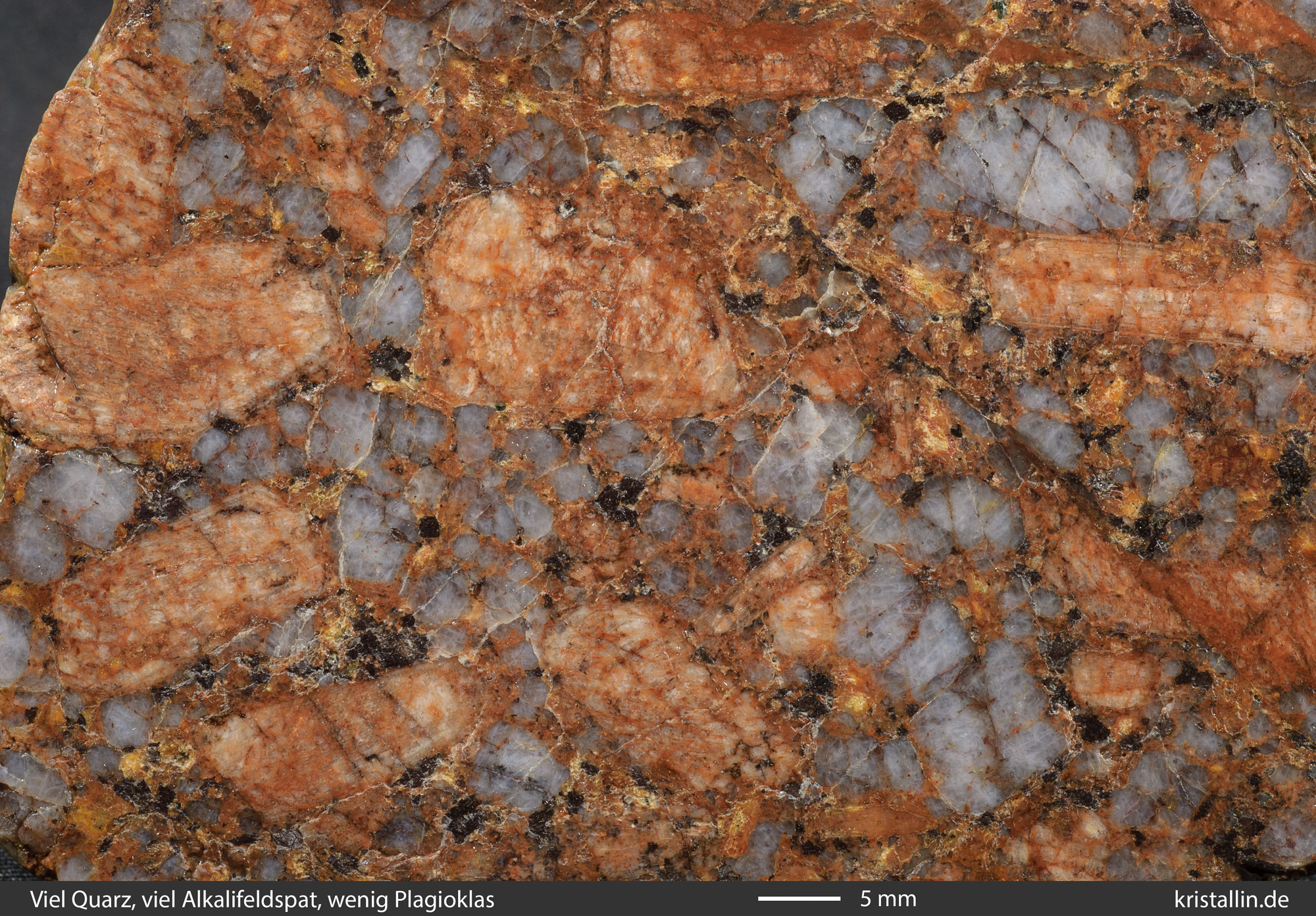 Vermutlich der am meisten falsch benutzte Begriff der Geologie. Viele reden davon, fast niemand weiß, was genau in einem Granit enthalten sein muss. Das sind vor allem viel Quarz und Alkalifeldspat.