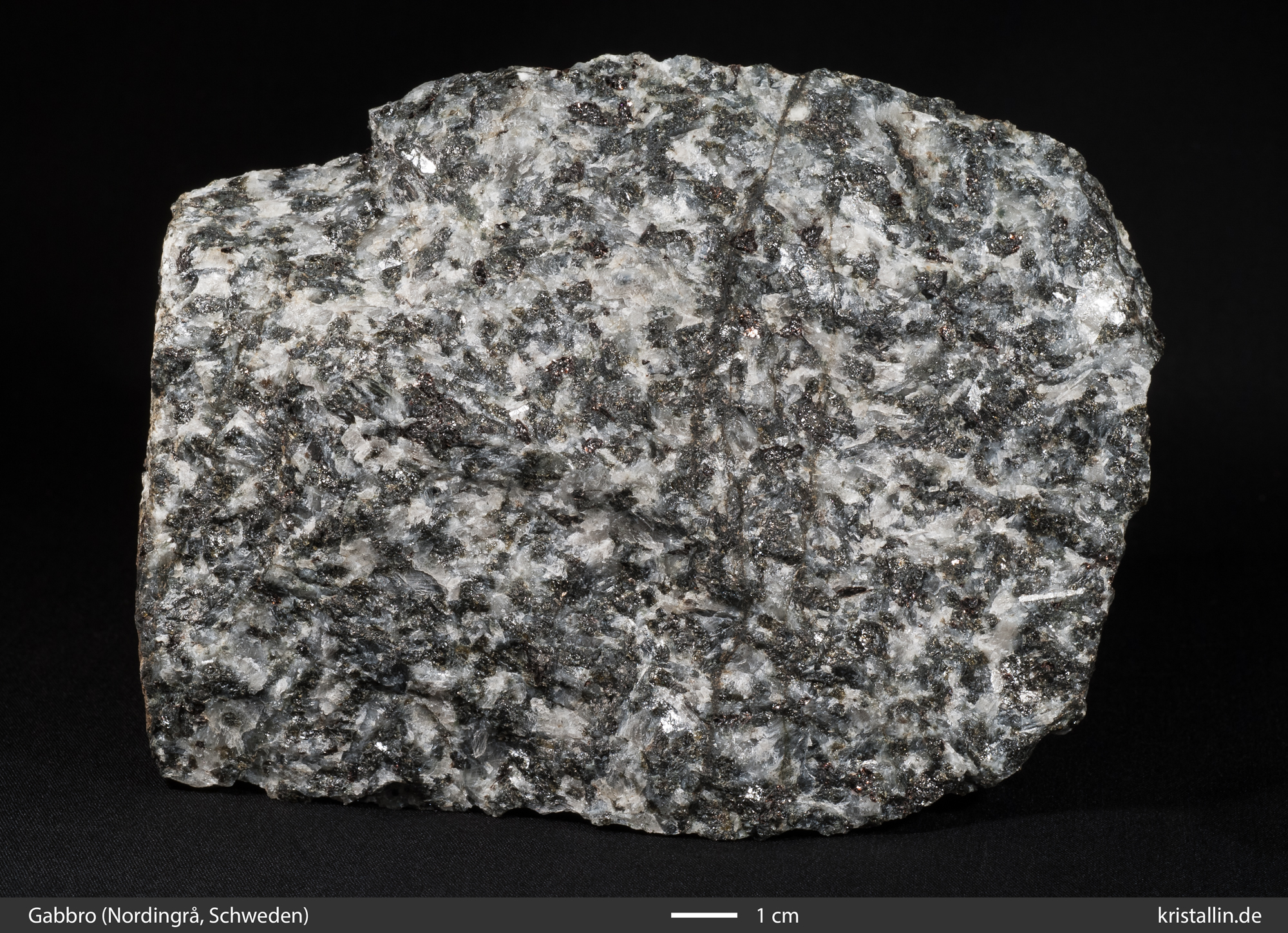 Gesteine, in denen Plagioklas der einzige Feldspat ist, gibt es gleich mehrfach. Ein Beispiel sind Diorit und Gabbro. Zur Unterscheidung muss man die Zusammensetzung des Plagioklas kennen, was für Amateure leider ein Hindernis ist, denn dafür braucht man ein Labor. Aber die dunklen Minerale können ein wenig helfen. (Mehr dazu weiter unten.)