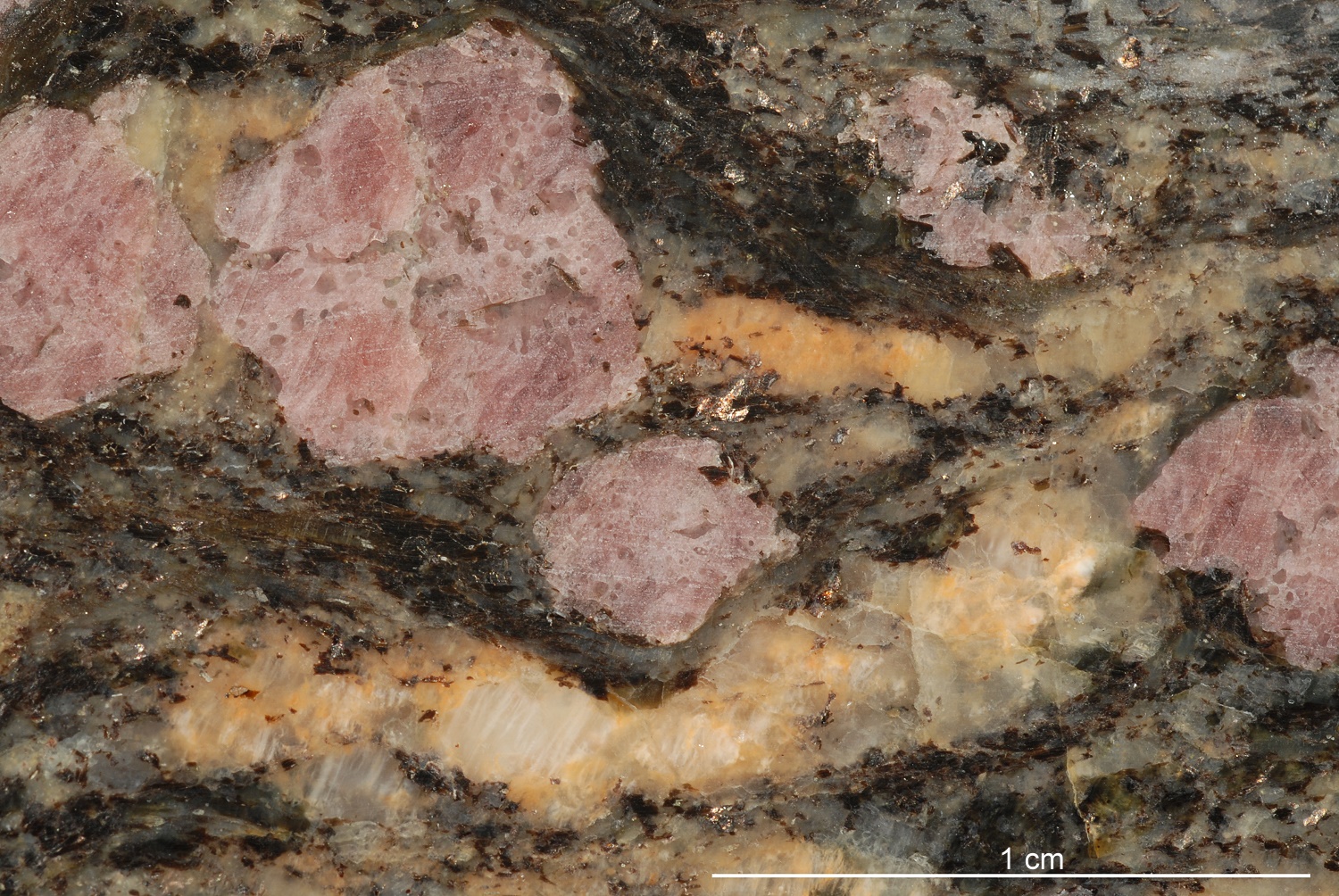 Granatamphibolite können ein richtungsloses oder auch ein gneisartiges Gefüge haben.