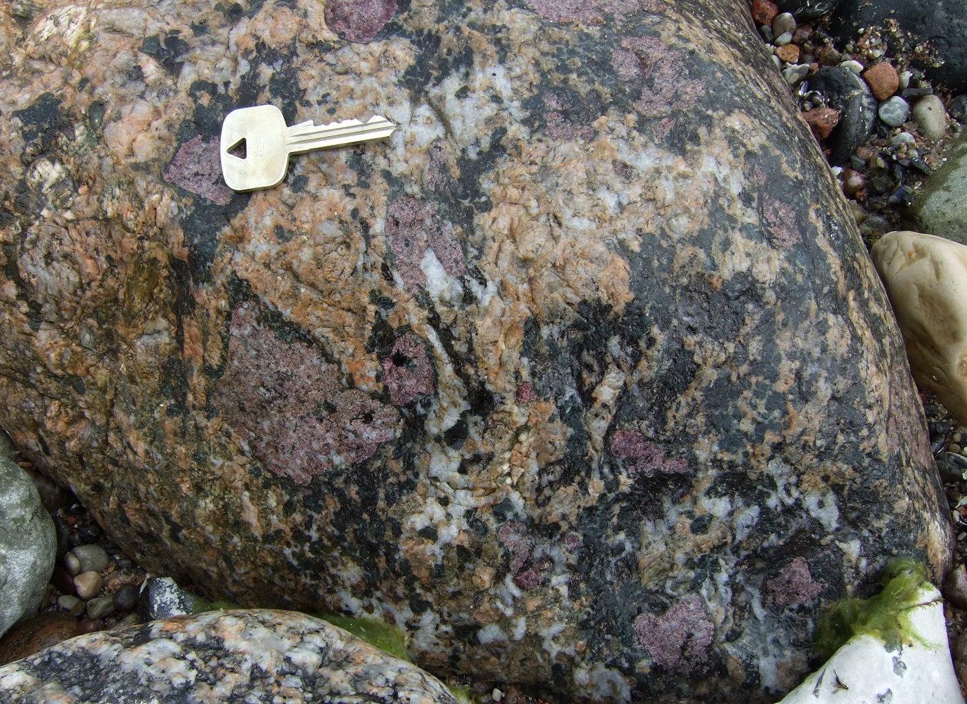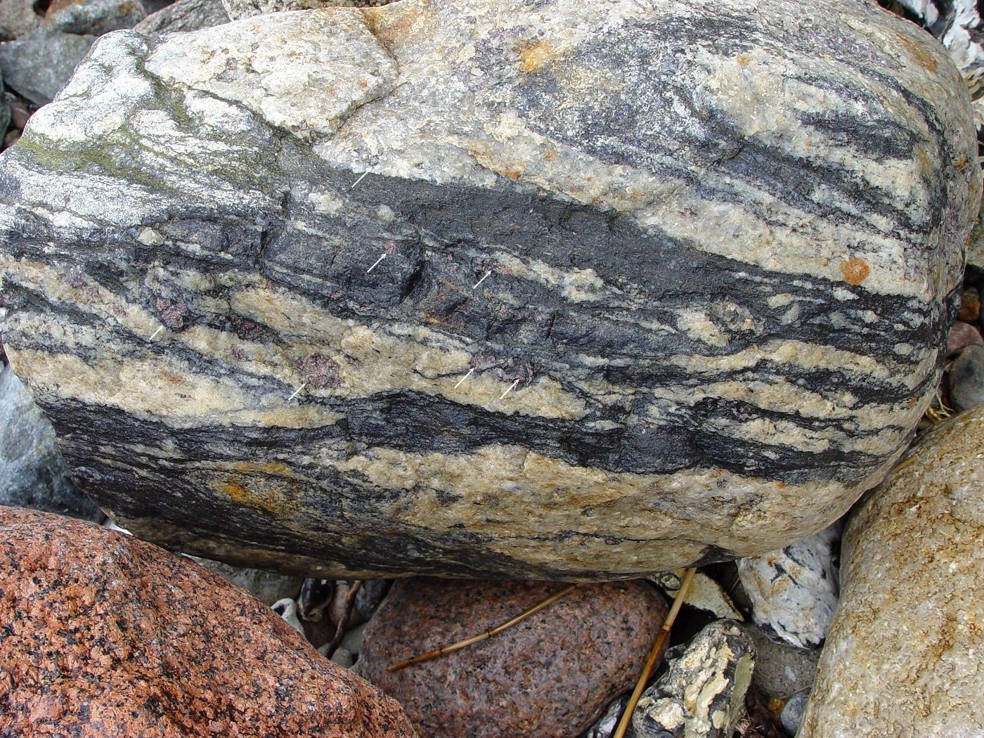 Granatführender Gneis aus dem Geschiebe an der Ostsee bei Travemünde