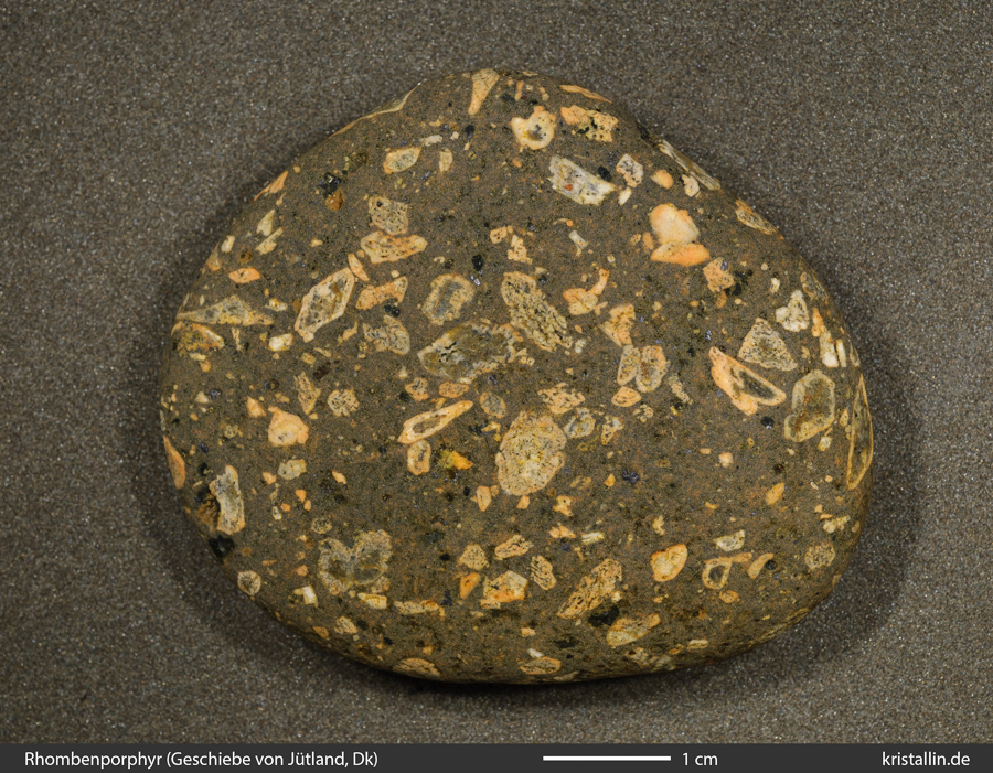 (8/32) Rhombenporphyr, unter Wasser fotografiert. Dieses und das vorherige Bild (Nr.7) zeigen das gleiche Stück jeweils von vorn und von hinten.