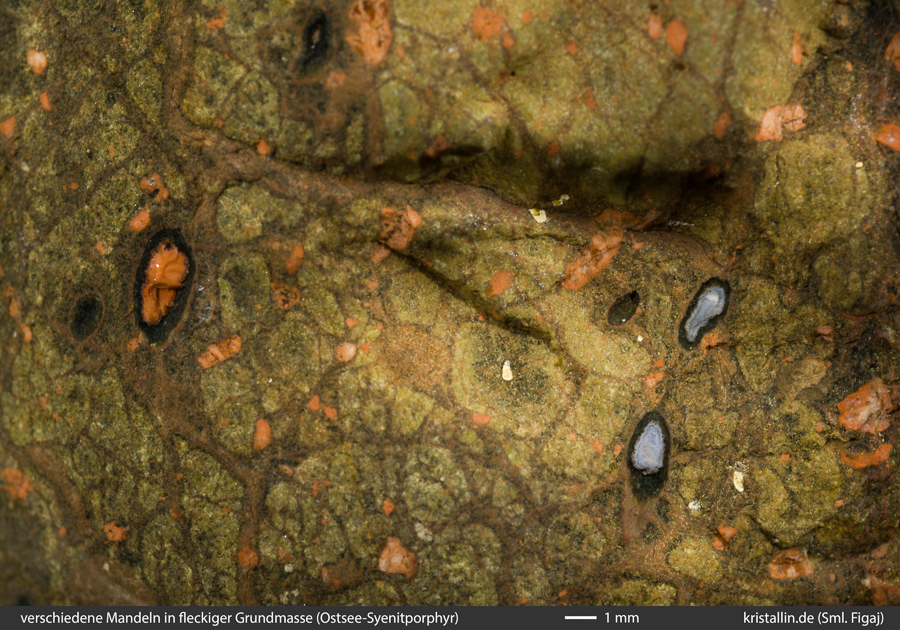 (22/30) Verschiedene Mandel in grüner, netzartiger Grundmasse.