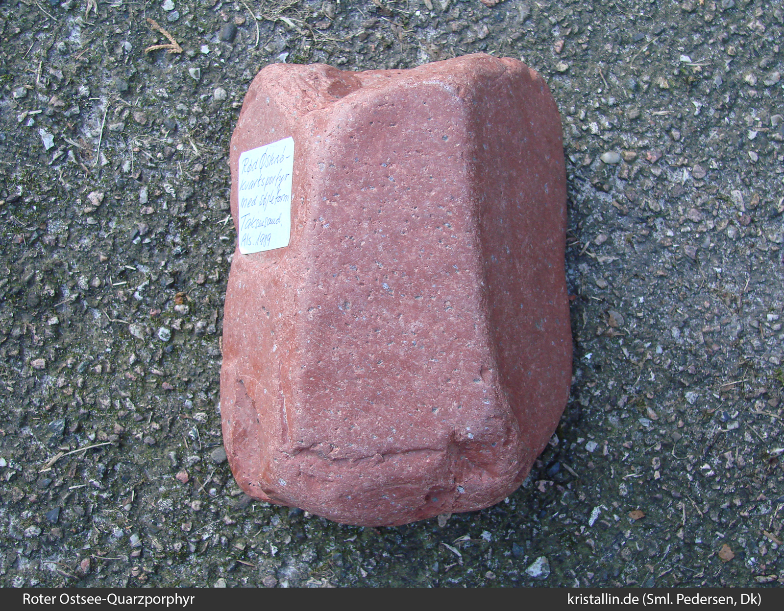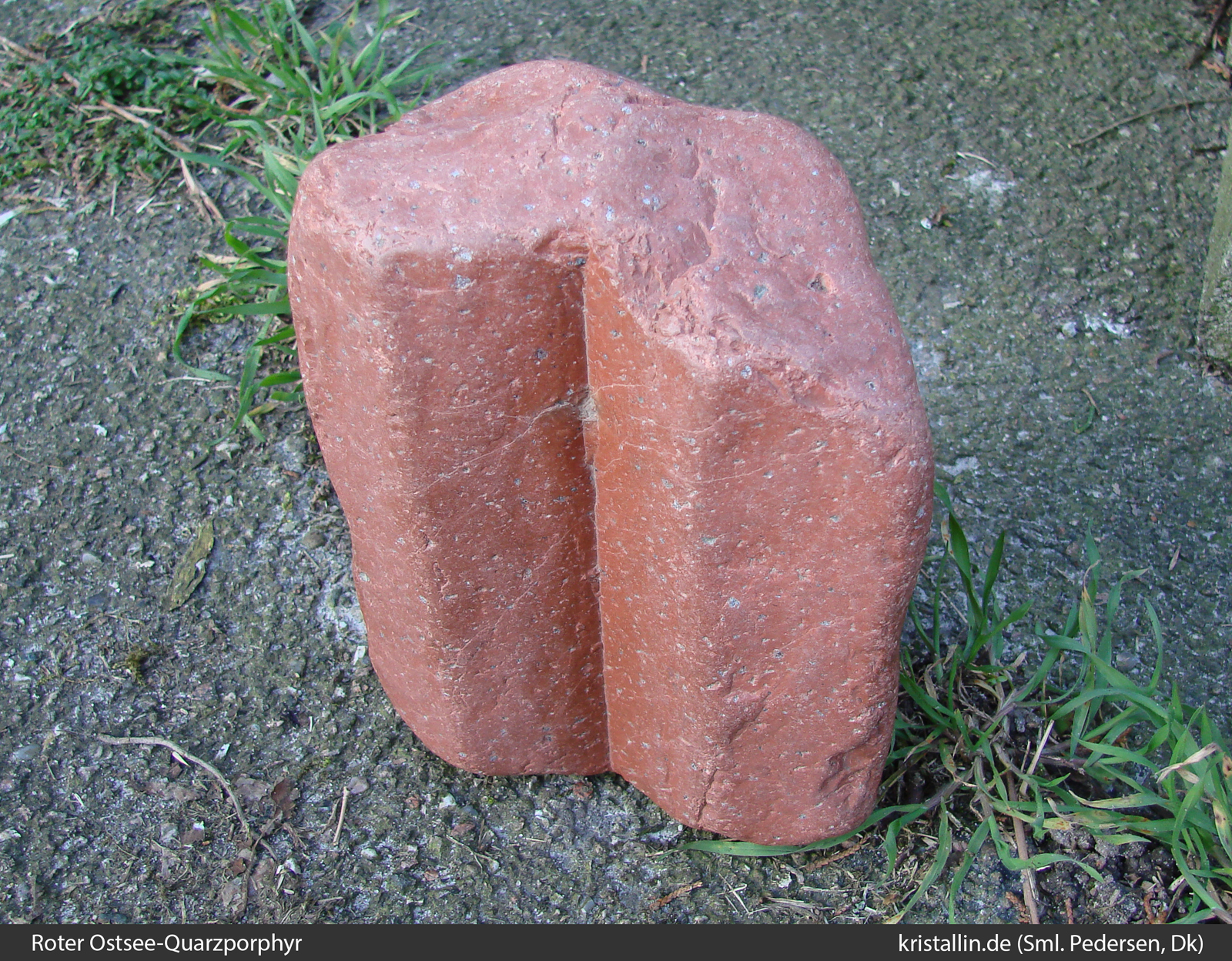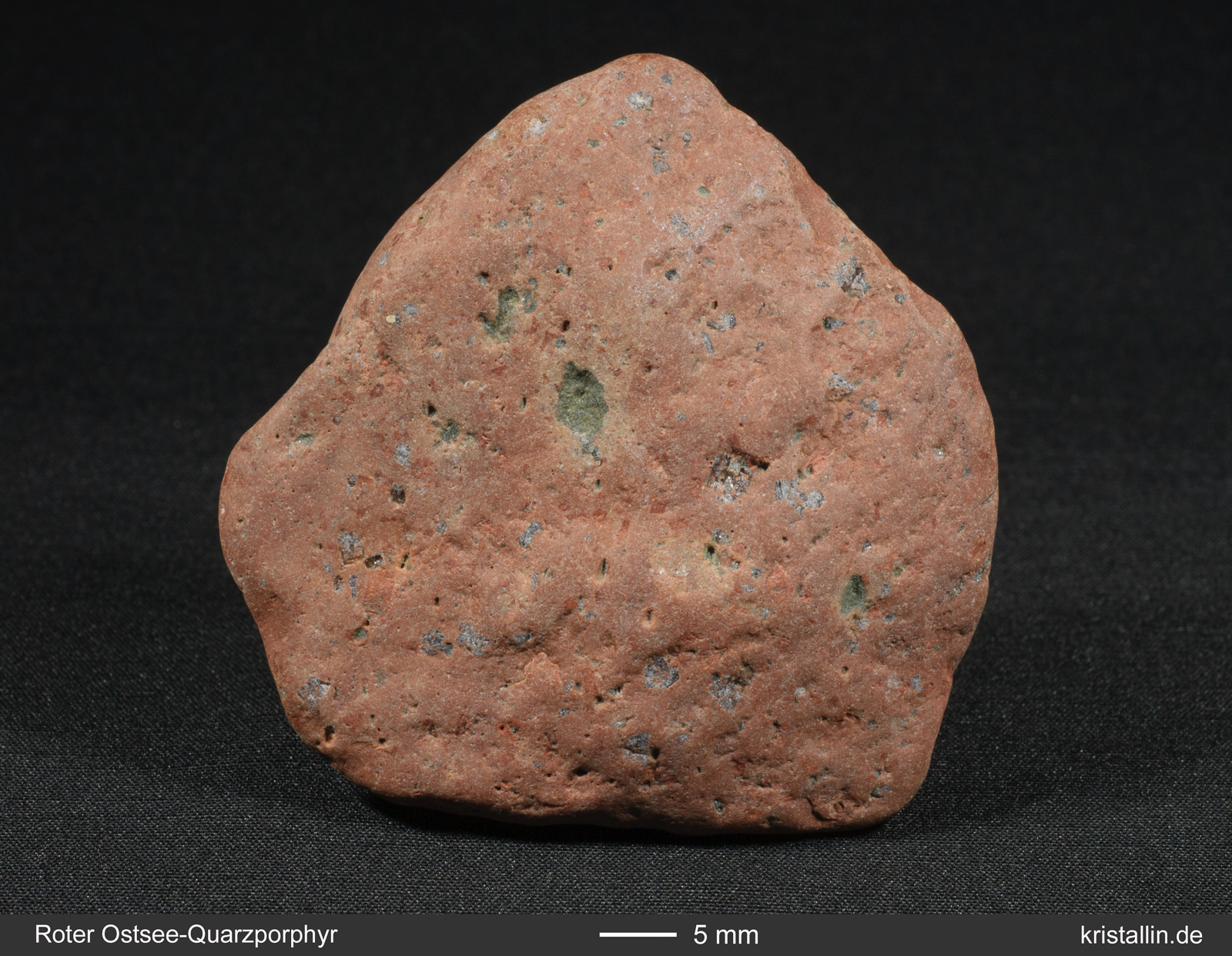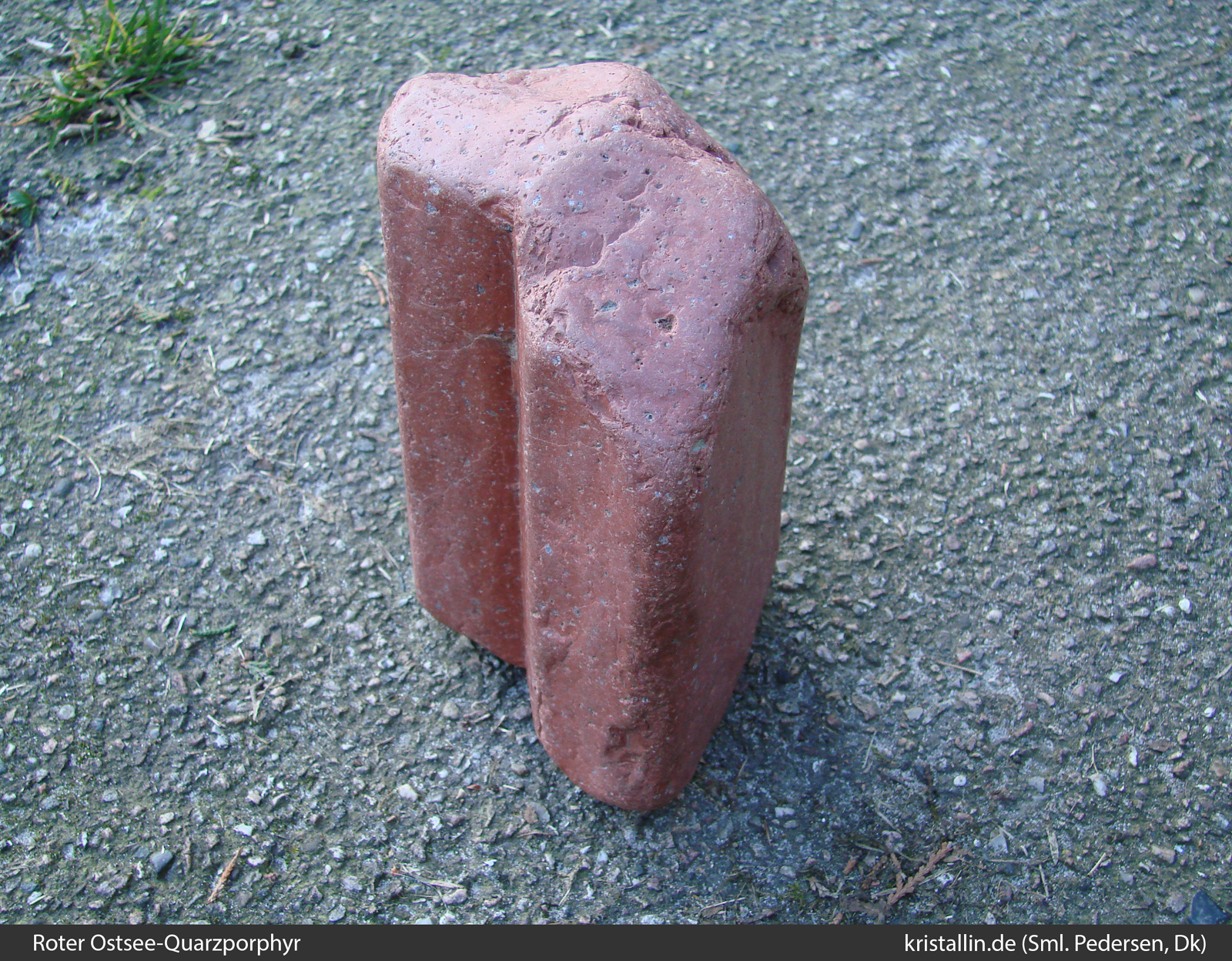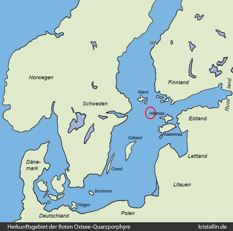 Der Rote Ostsee-Quarzporphyr ist ein Leitgeschiebe aus der nördlichen Ostsee. Es gibt keine Proben aus dem Anstehenden, denn das Herkunftsgebiet liegt unter Wasser.