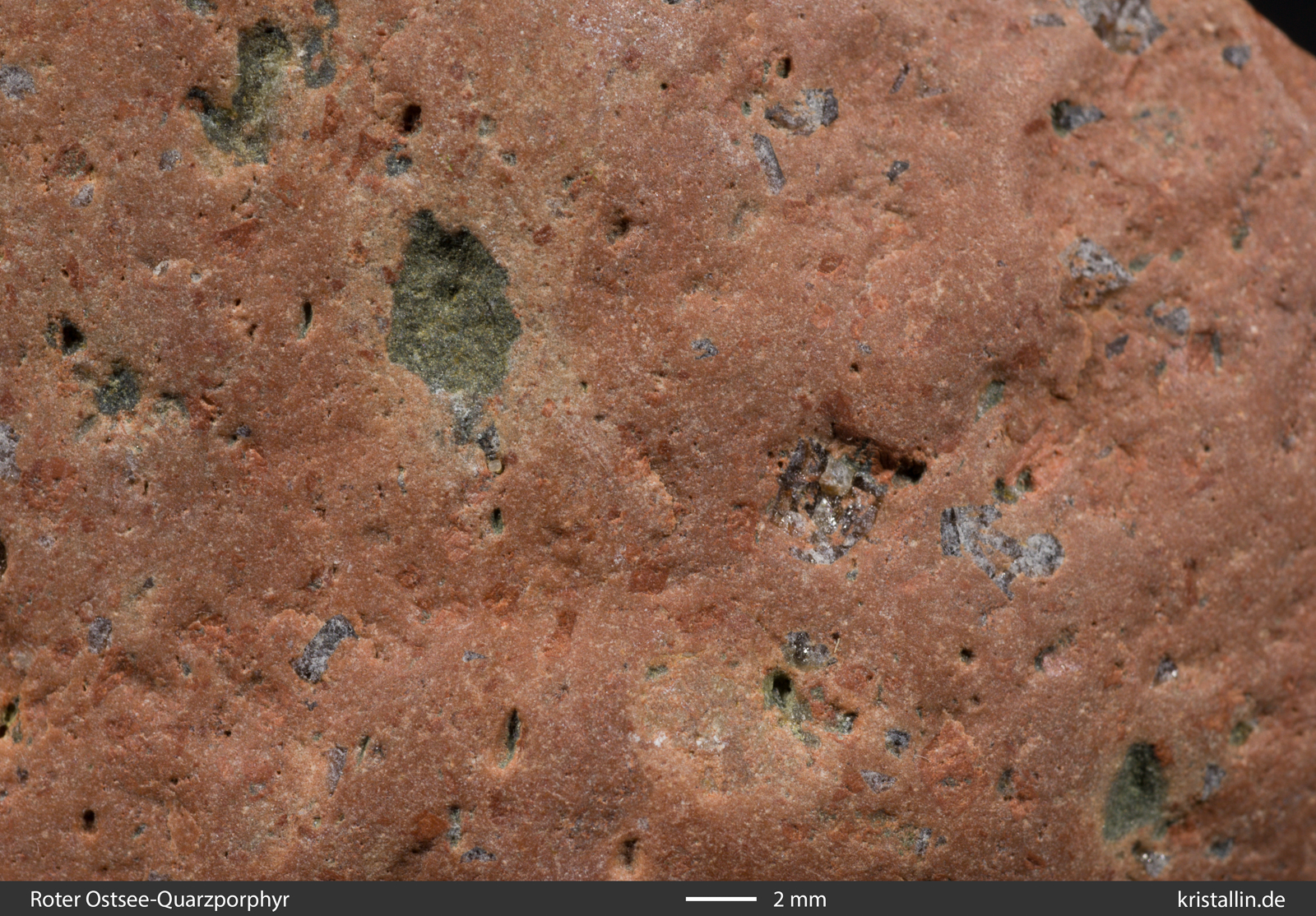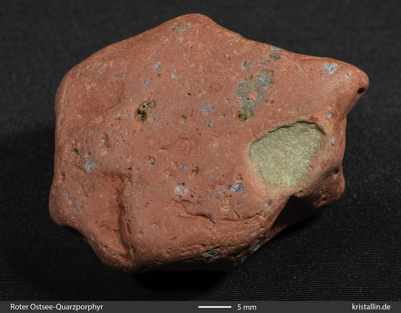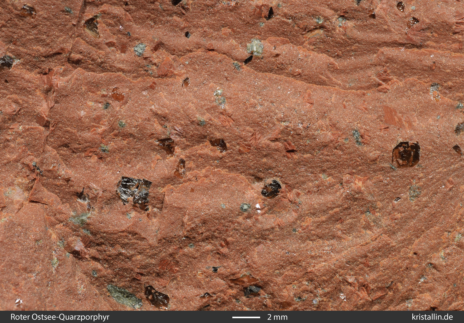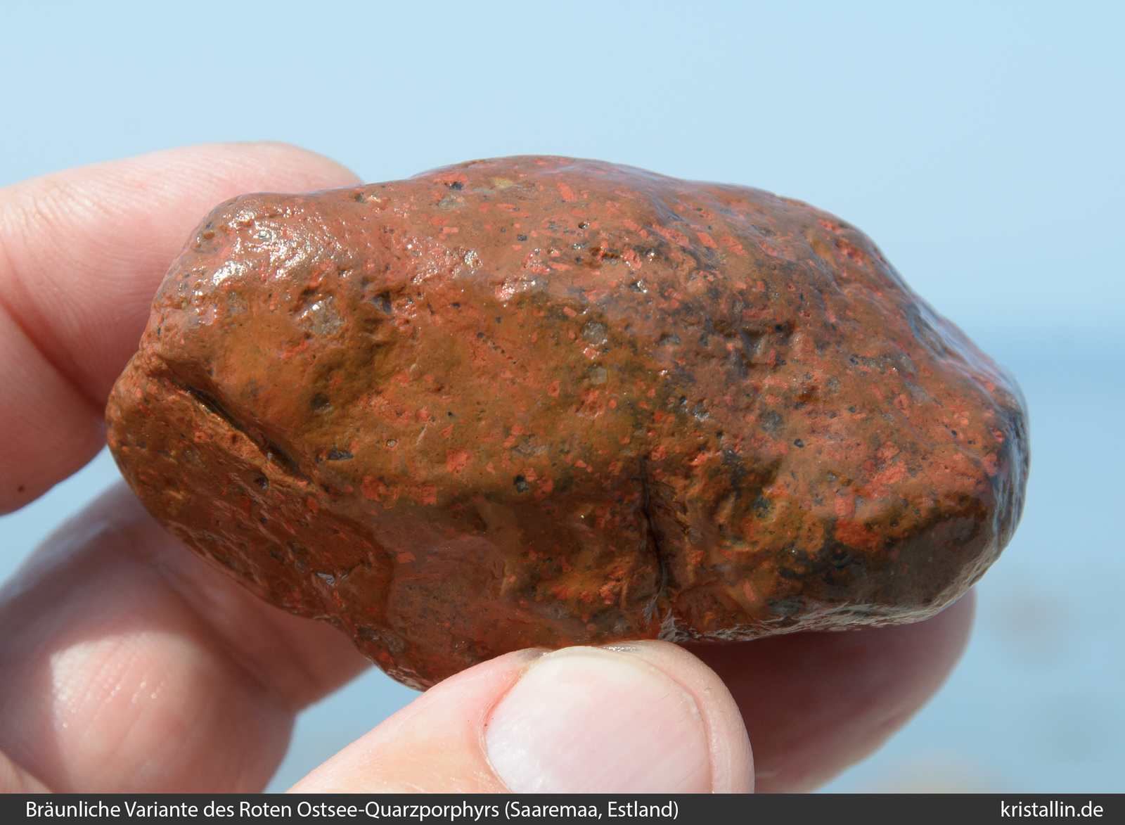 Der Rote Ostsee-Quarzporphyr ist ein Leitgeschiebe aus der nördlichen Ostsee. Es gibt keine Proben aus dem Anstehenden, denn das Herkunftsgebiet liegt unter Wasser.