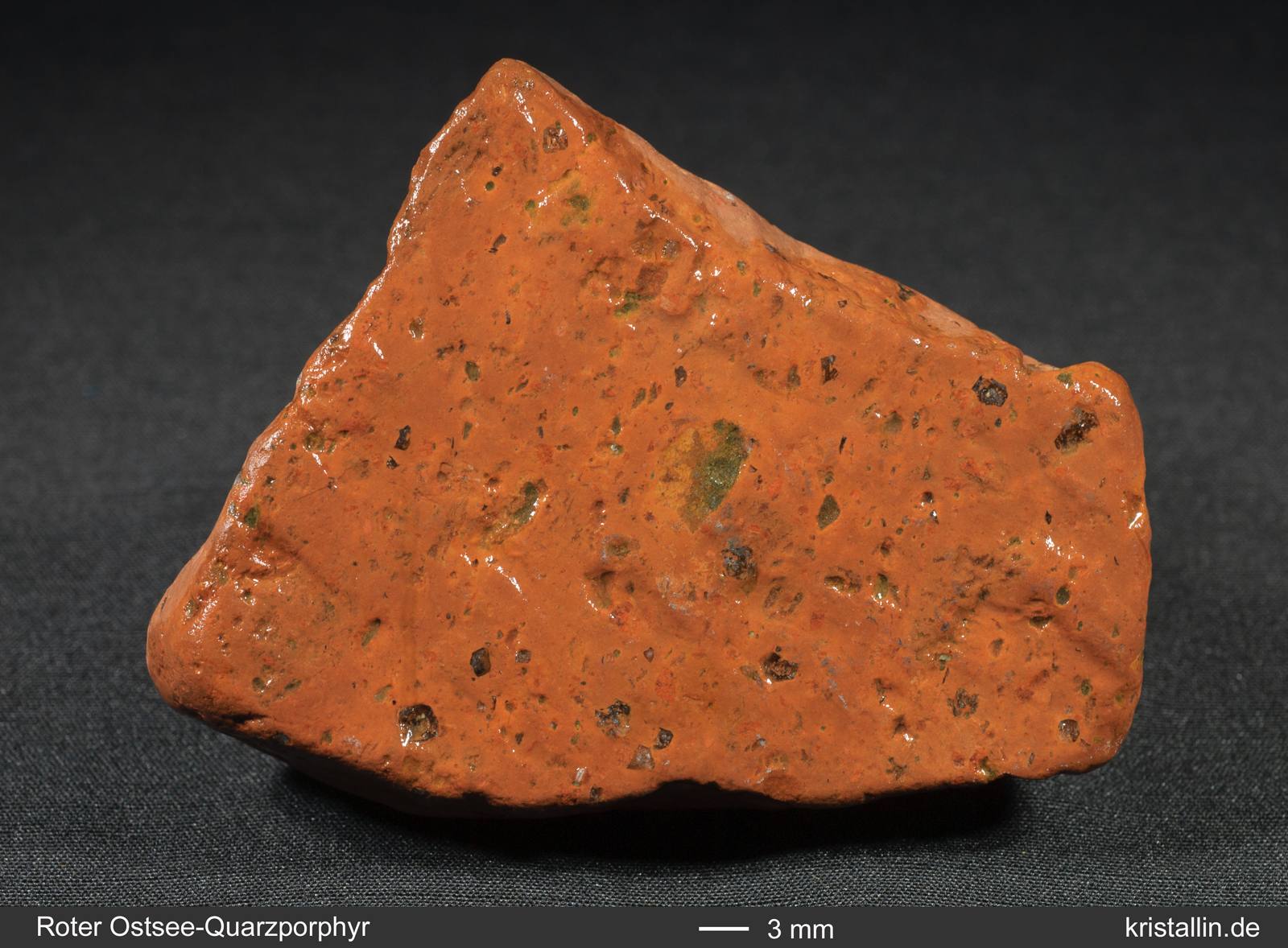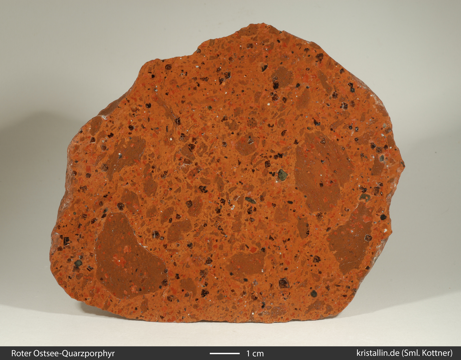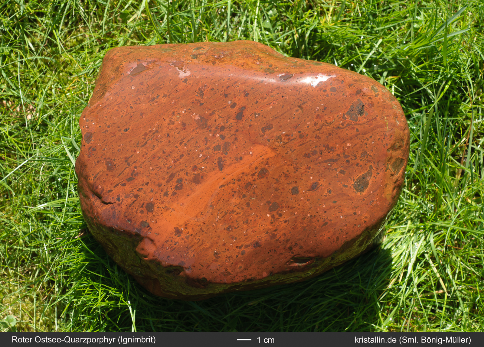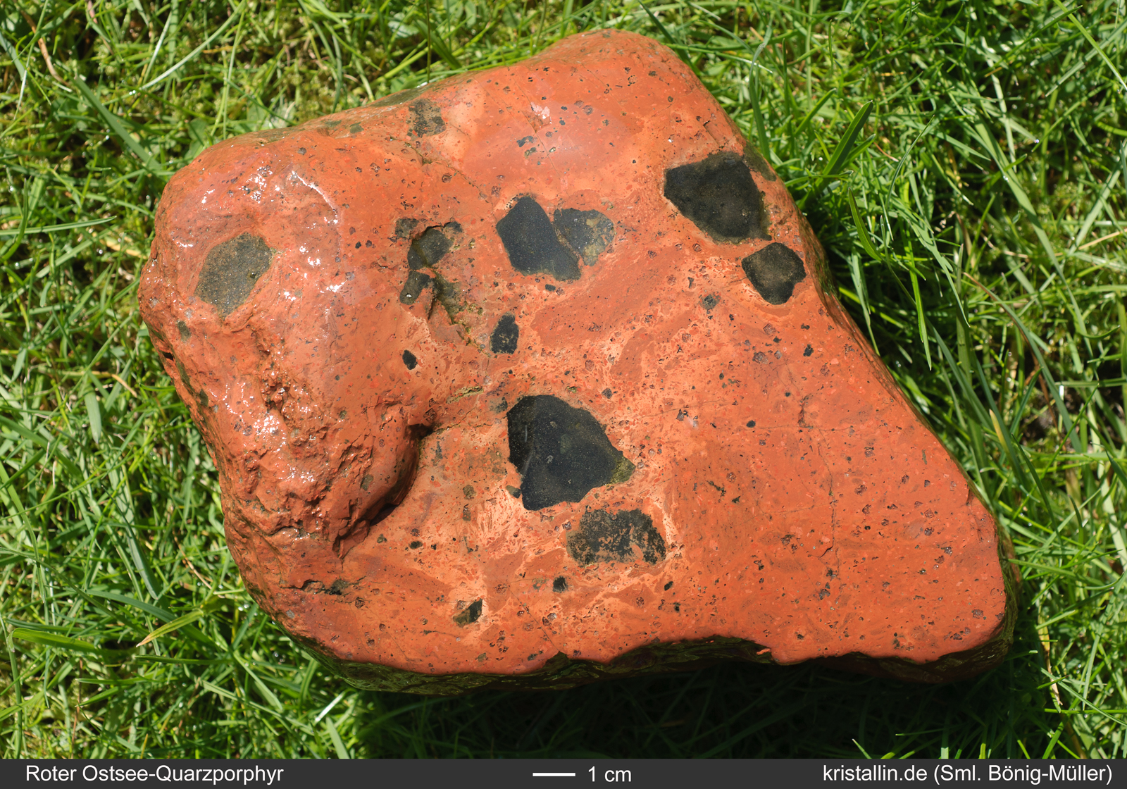 Der Rote Ostsee-Quarzporphyr ist ein Leitgeschiebe aus der nördlichen Ostsee. Es gibt keine Proben aus dem Anstehenden, denn das Herkunftsgebiet liegt unter Wasser.