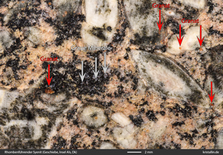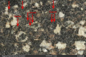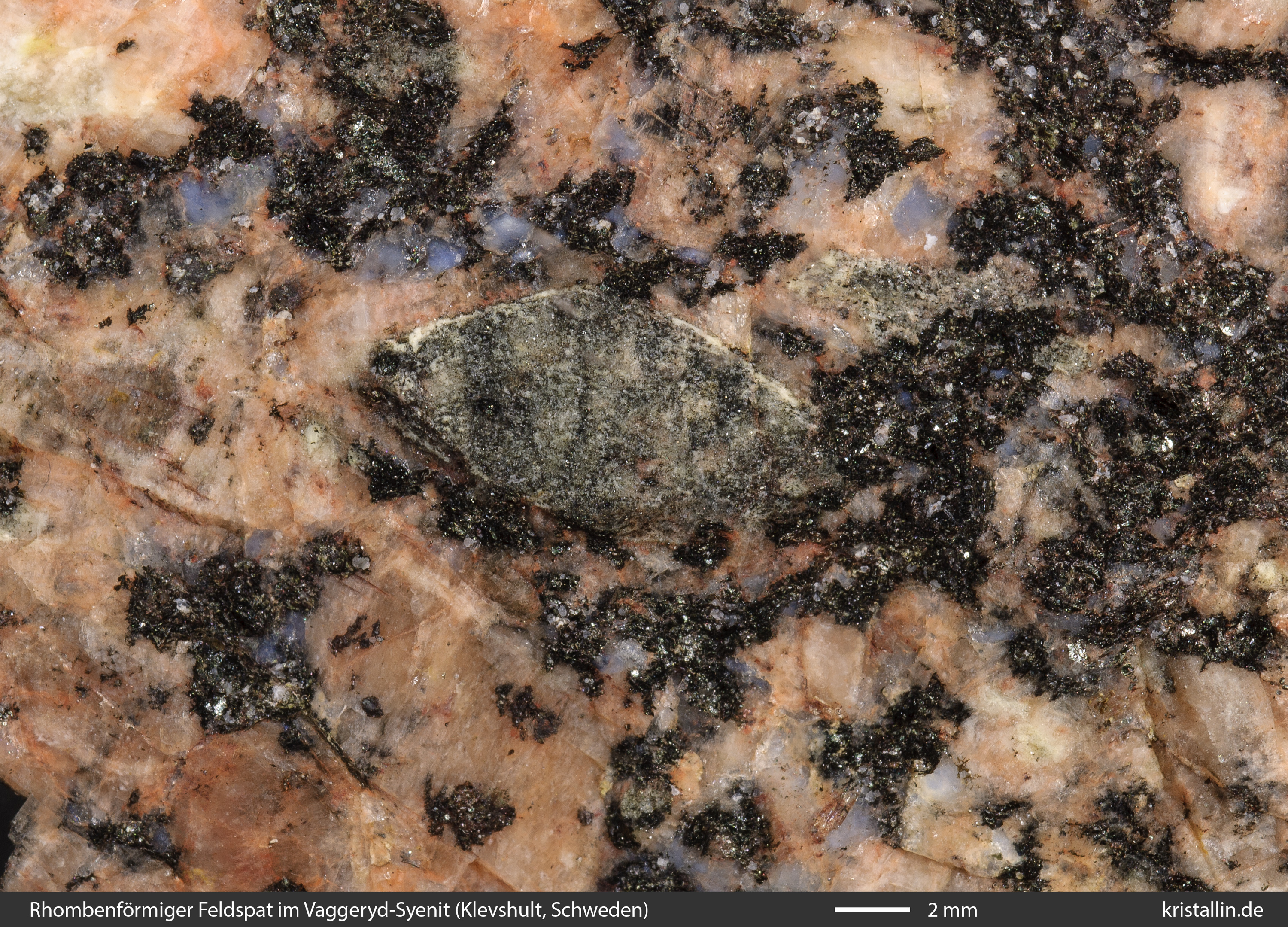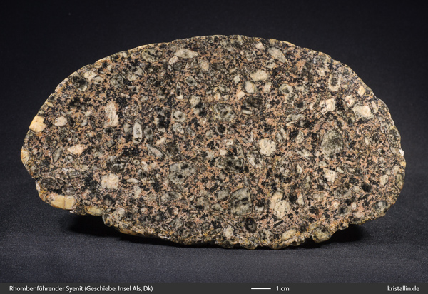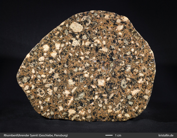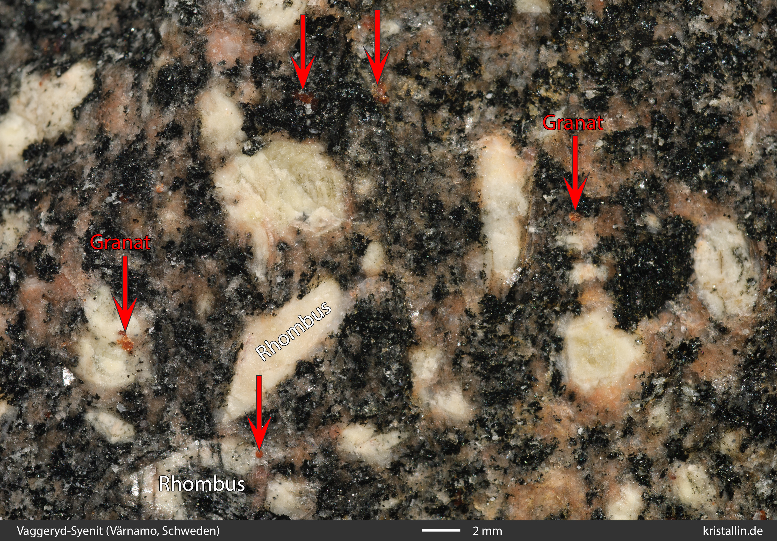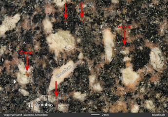 Wer sich mit Gesteinen in Norddeutschland beschäftigt, wird über kurz oder lang einen dieser rhombenführenden Syenite finden. Die Geschiebe sind an den Rhomben und der körnigen Grundmasse leicht zu erkennen. Oft stecken darin auch kleine Granate. Quarz fehlt oder macht nur einen kleinen Teil des Gesteins aus.