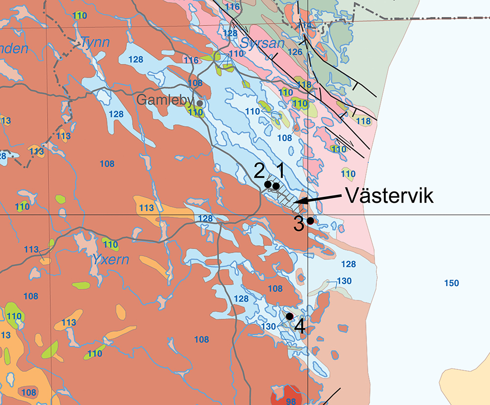 (9/34) Geologische Übersichtskarte des Västervik-Gebietes. Quelle: SGU (Details siehe Text.)
