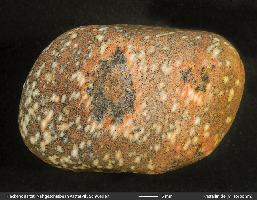 (15/34) An gleicher Stelle fand sich auch ein kleines Geröll eines Mischtyps zwischen Fleckenquarzit und Västervik-Fleckengestein, der dem Geschiebefund von Fehmarn ähnelt.